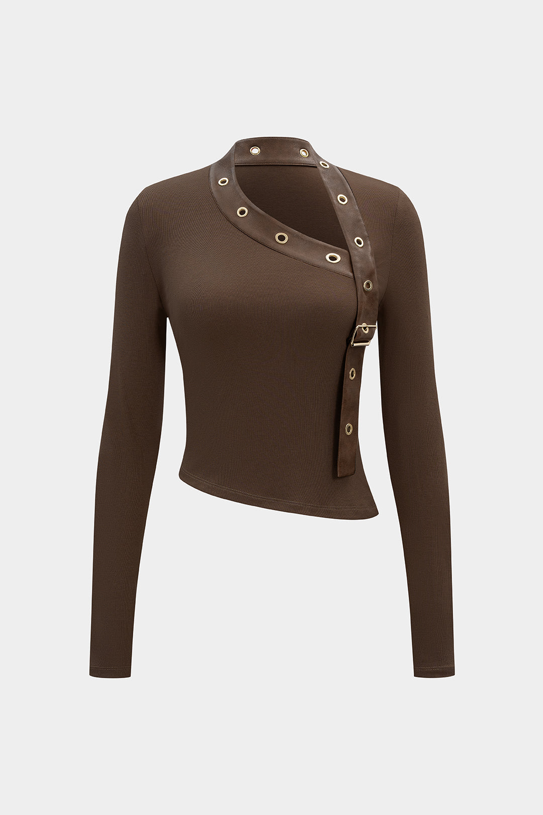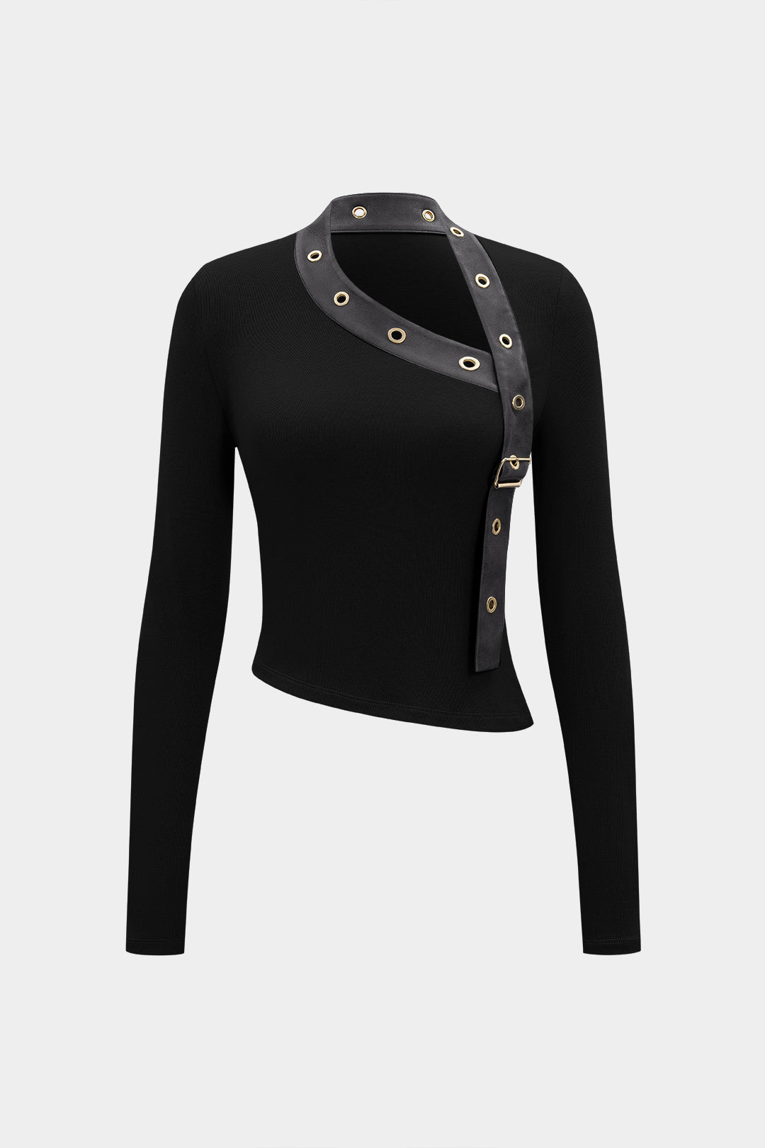 Faux Leather Metallic Asymmetrical Long-Sleeve Top