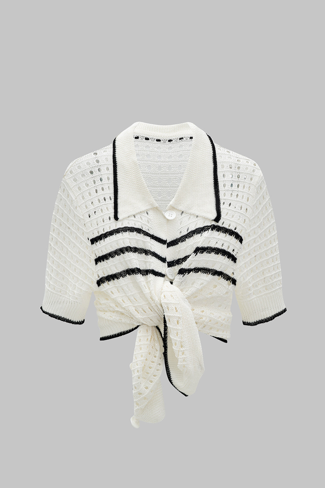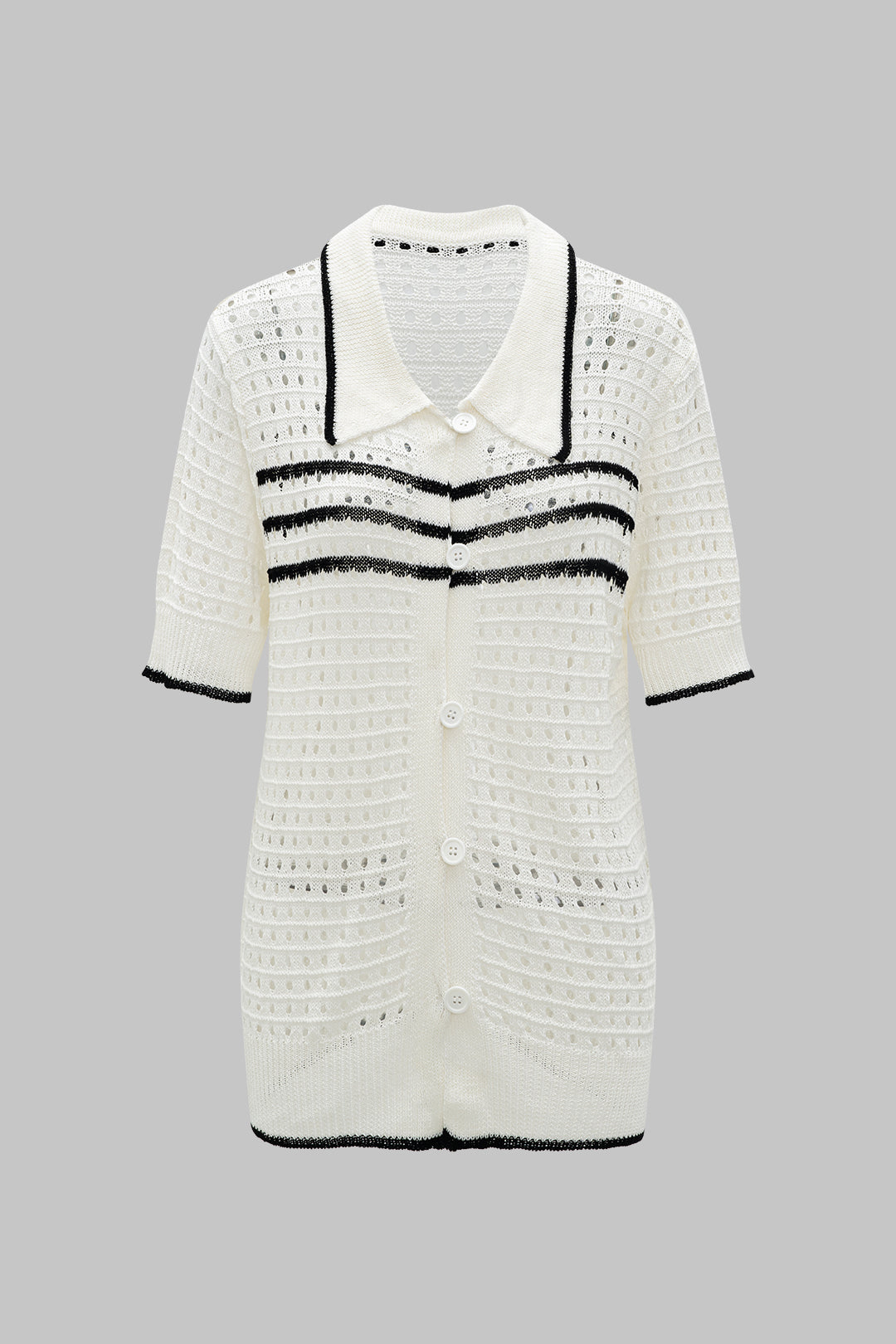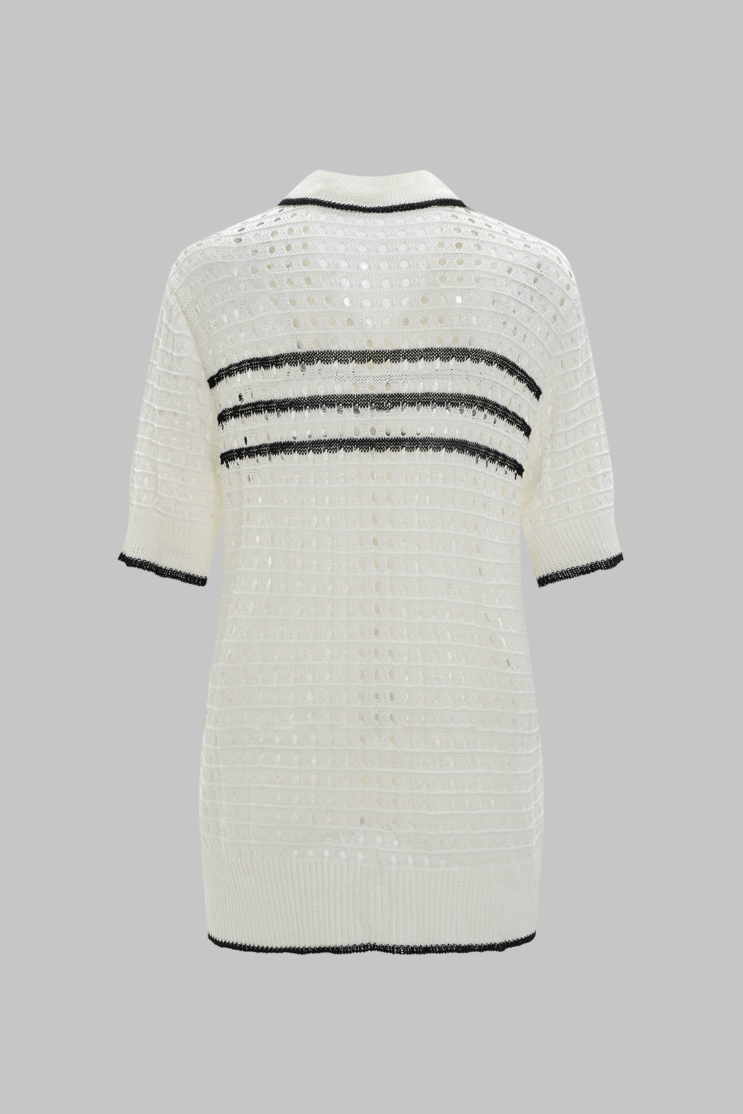Knit Contrast Cut Out Short Sleeve T-Shirt
