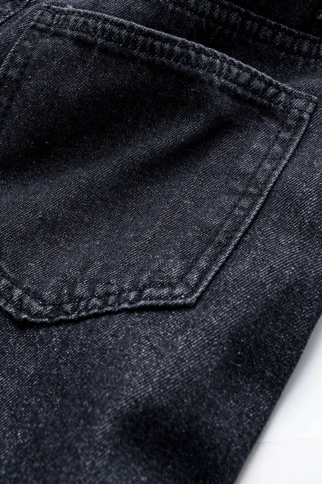 Denim Frayed Cut Out Button Zipper Wide Leg Jeans