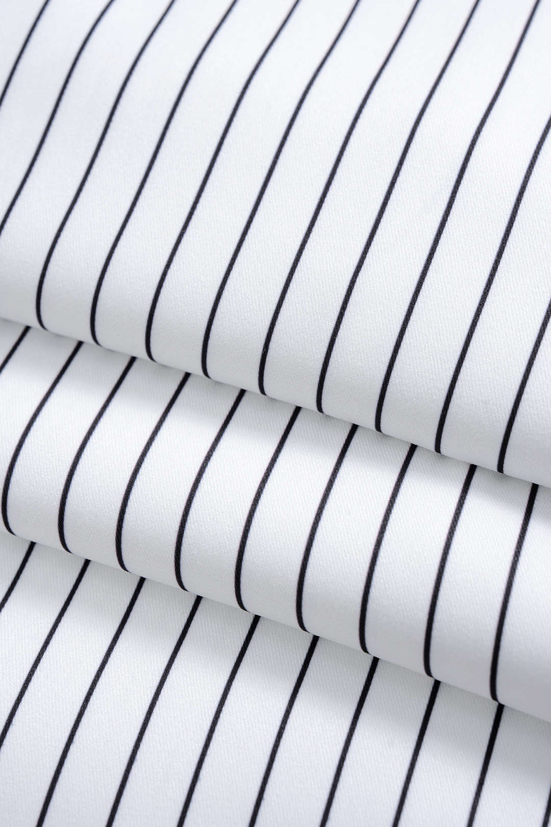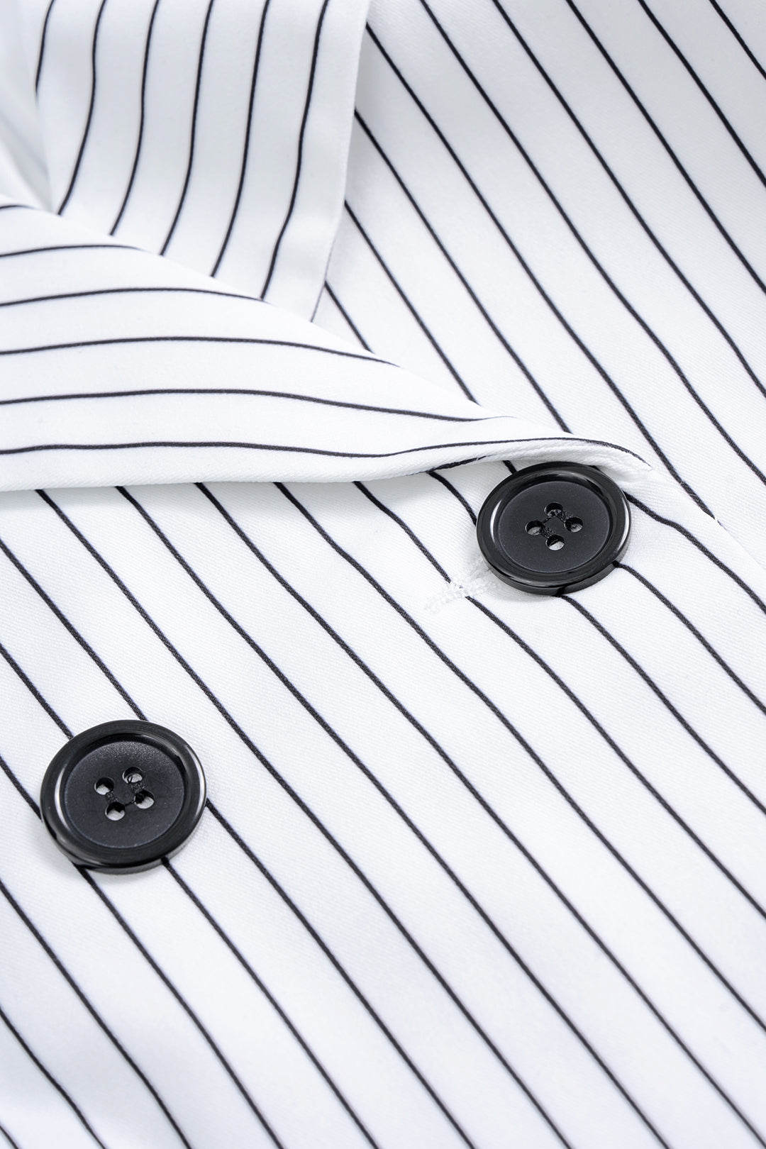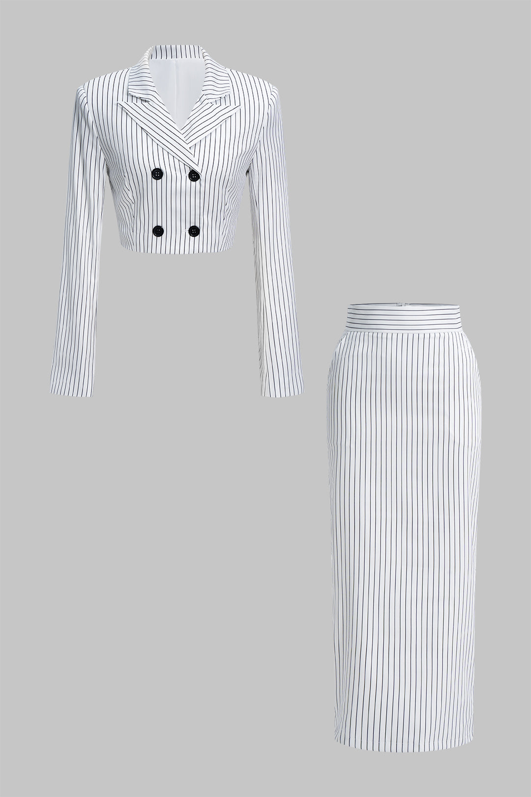Stripes Print Notched Lapel Long-Sleeve Top And High Waist Skirt Set