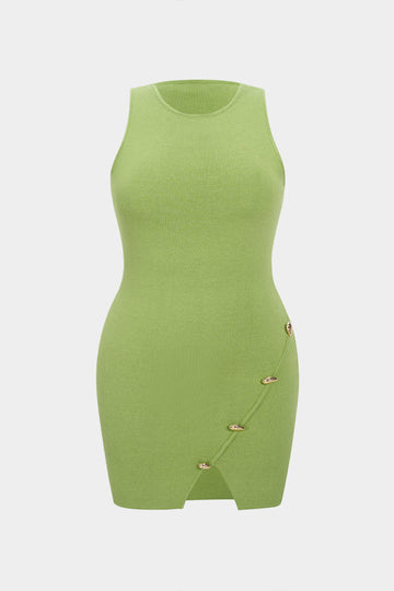 Plus Size Zipper Puff Hem Sleeveless Mini Dress