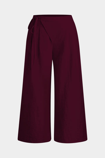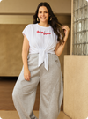 Plus Size Stripes Print Tie Front Round Neck Short-Sleeve Top And Wide-Leg Pants Set