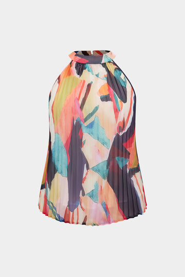 Plus Size Abstract Print Satin Ruched Sleeveless Midi Dress
