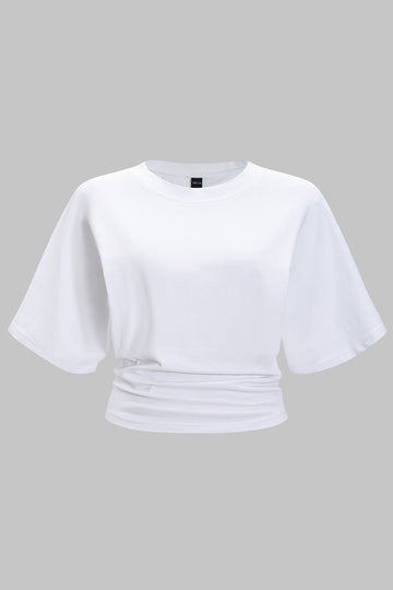 Plus Size Round Neck Short Sleeve Tie T-Shirt