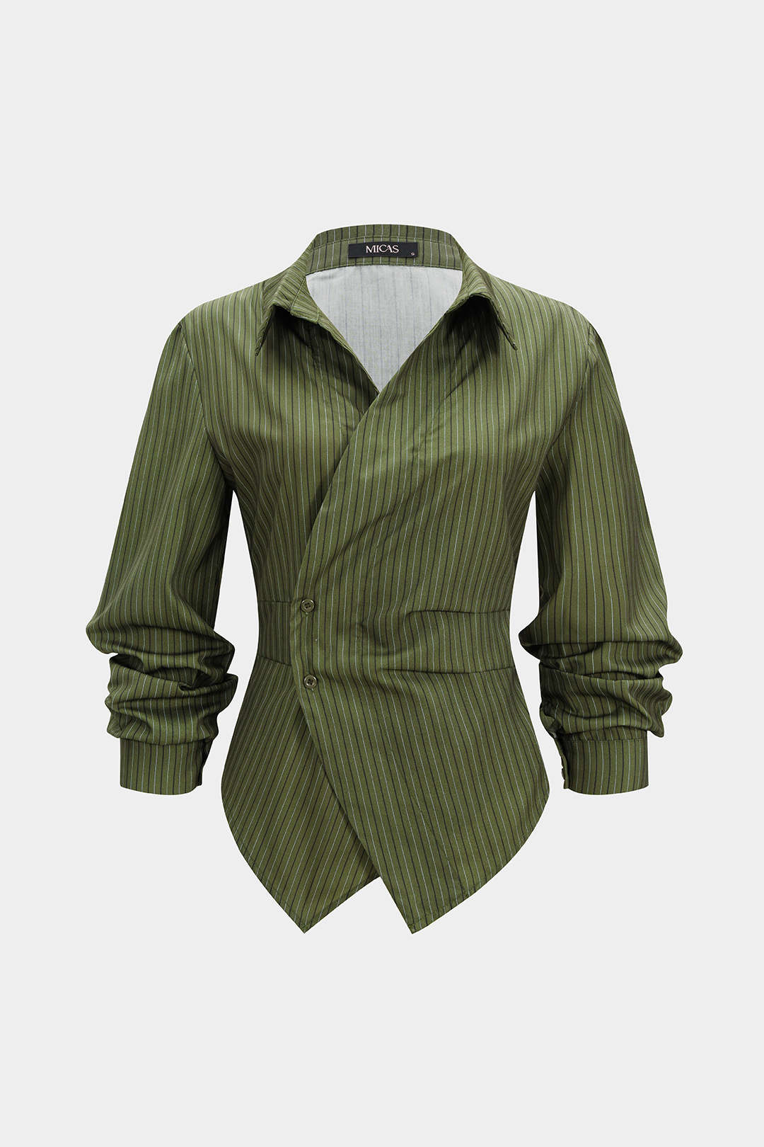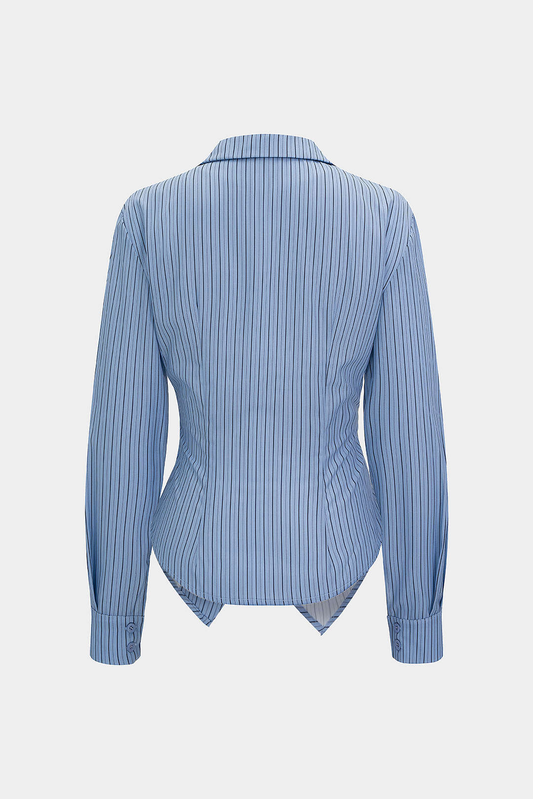 Stripes Print V-Neck Ruched Long-Sleeve Shirt