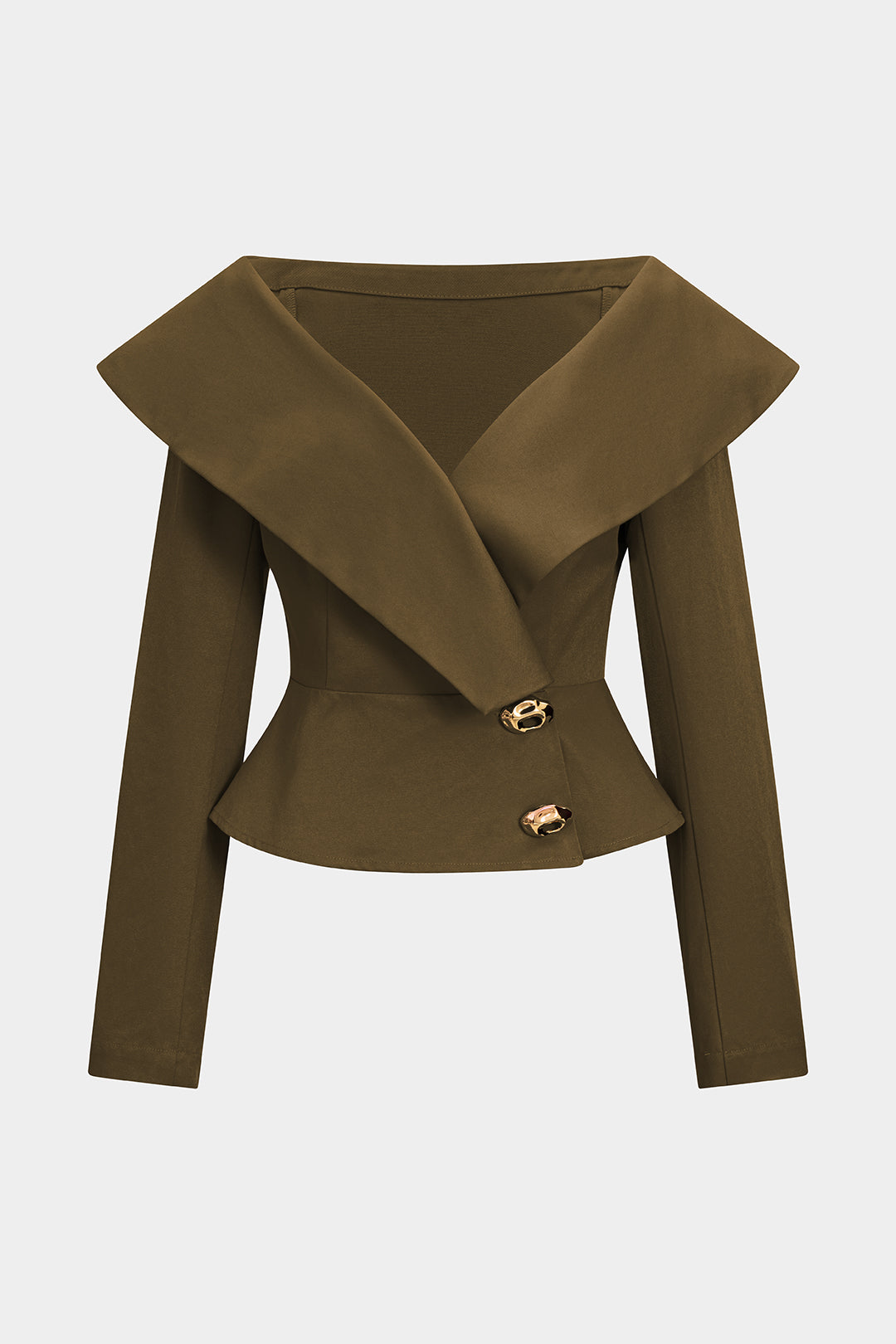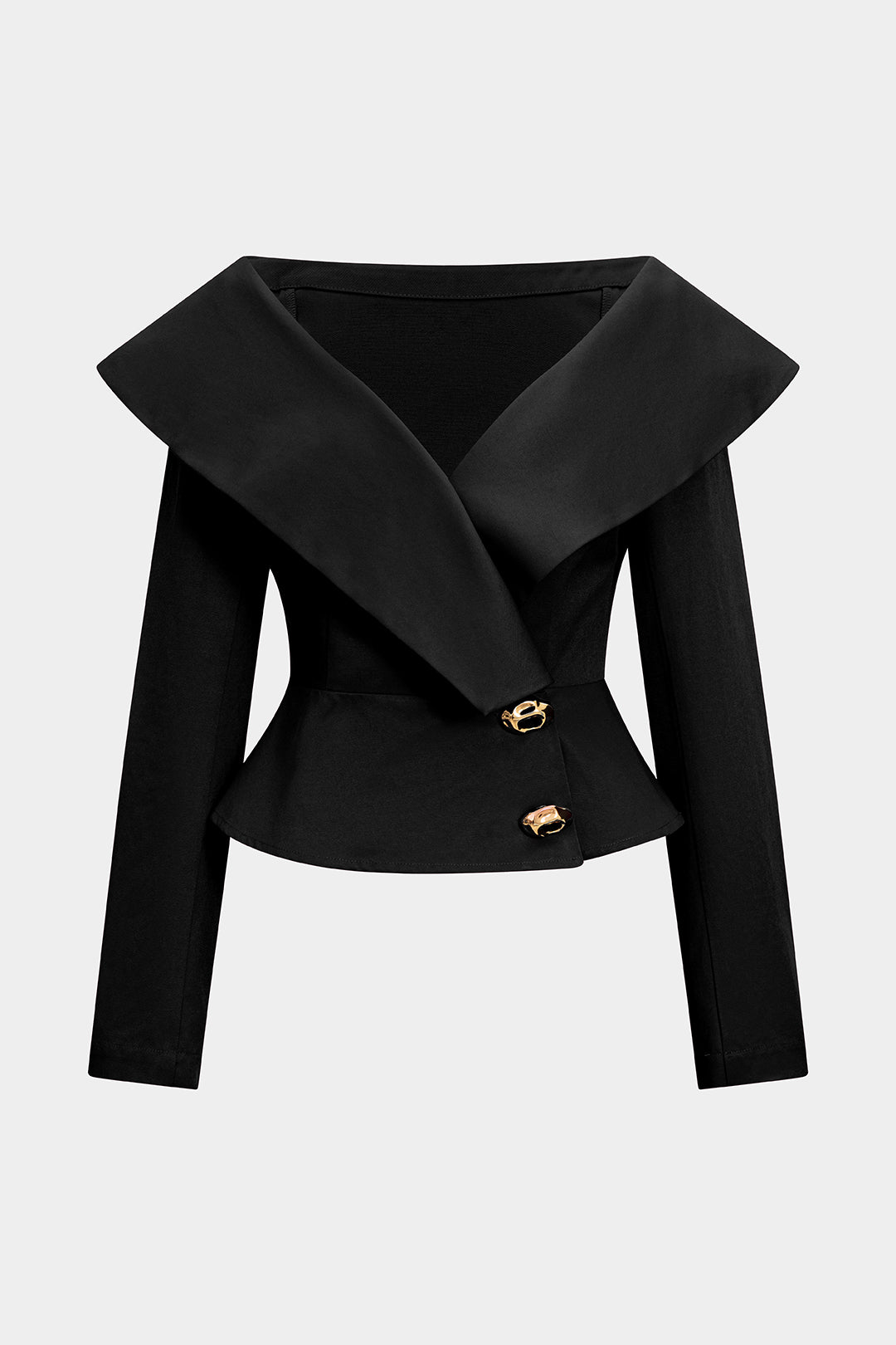 Asymmetrical Metallic Button Crossed Long-Sleeve Shirt