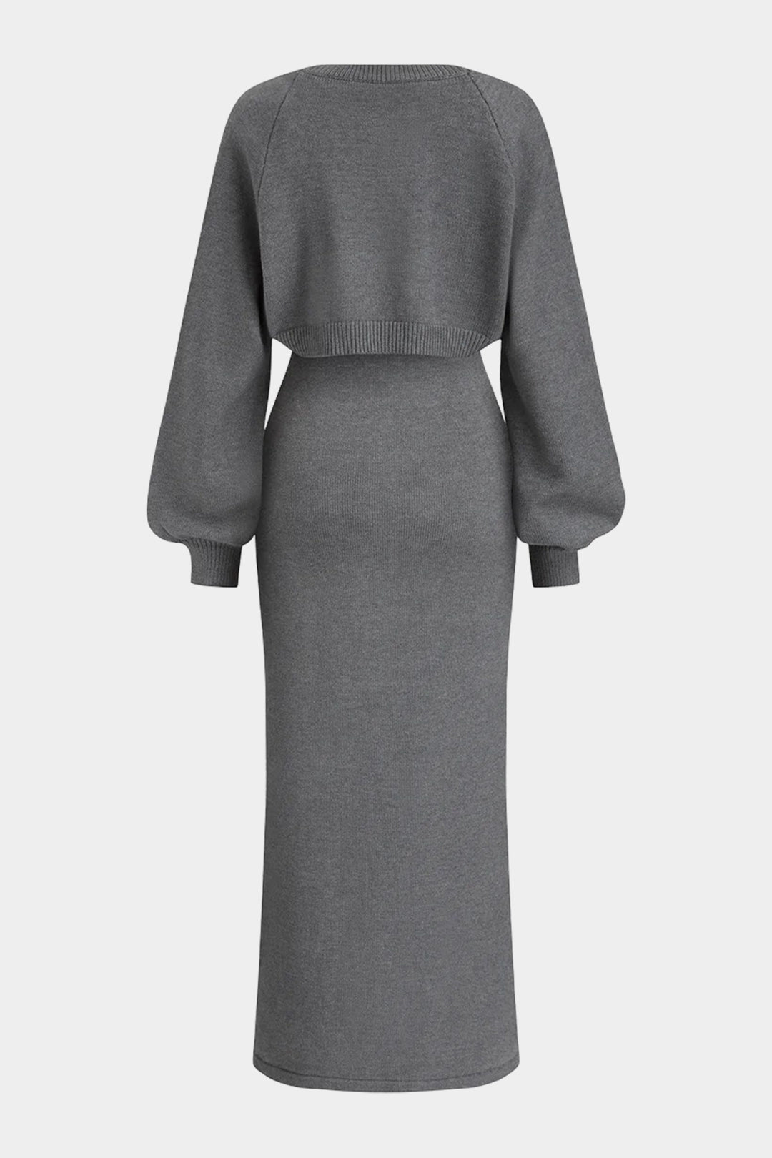 Knit Cropped Top And Round Neck Sleeveless Dress Set