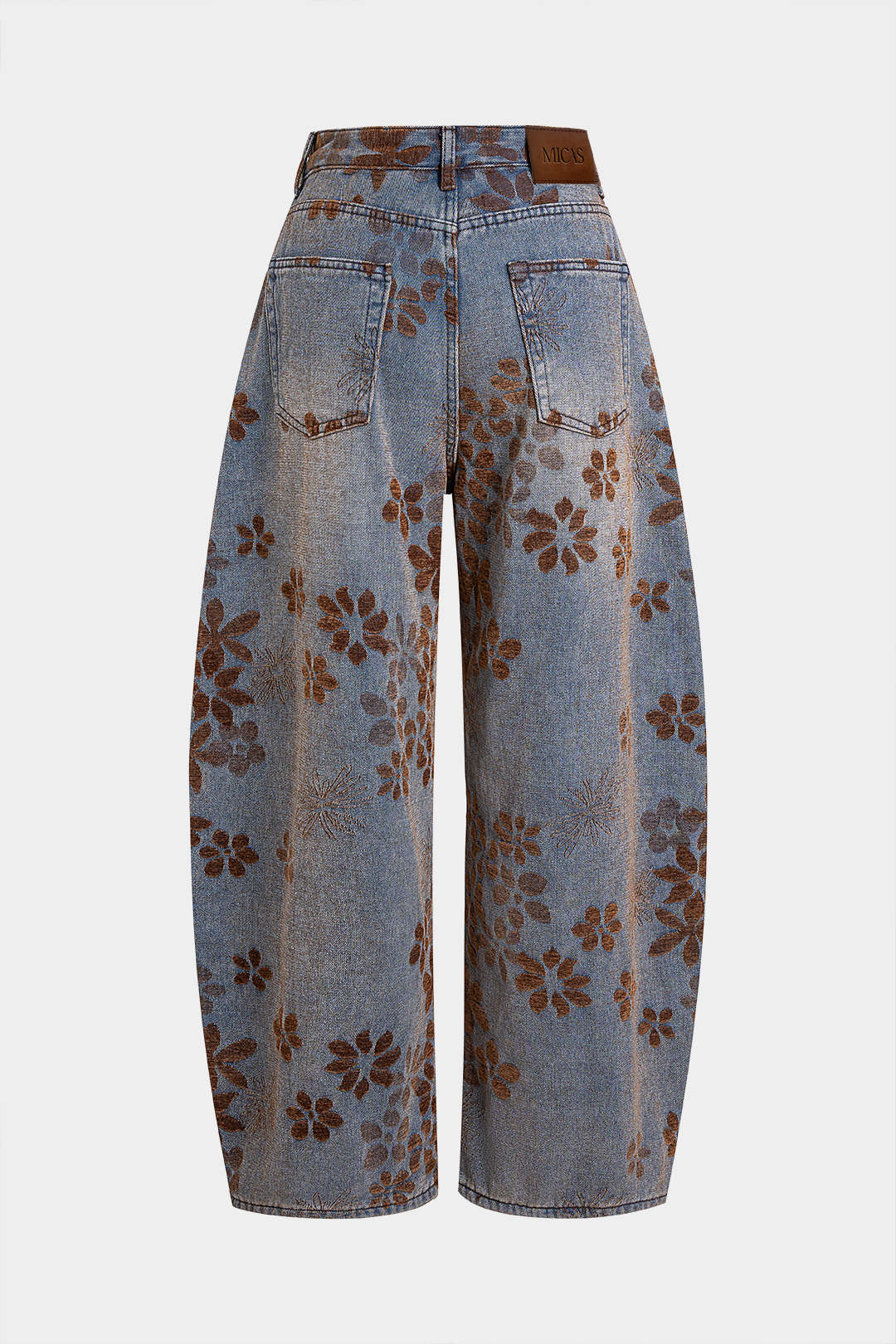 Denim Floral Print High-Waist Pocket Jeans