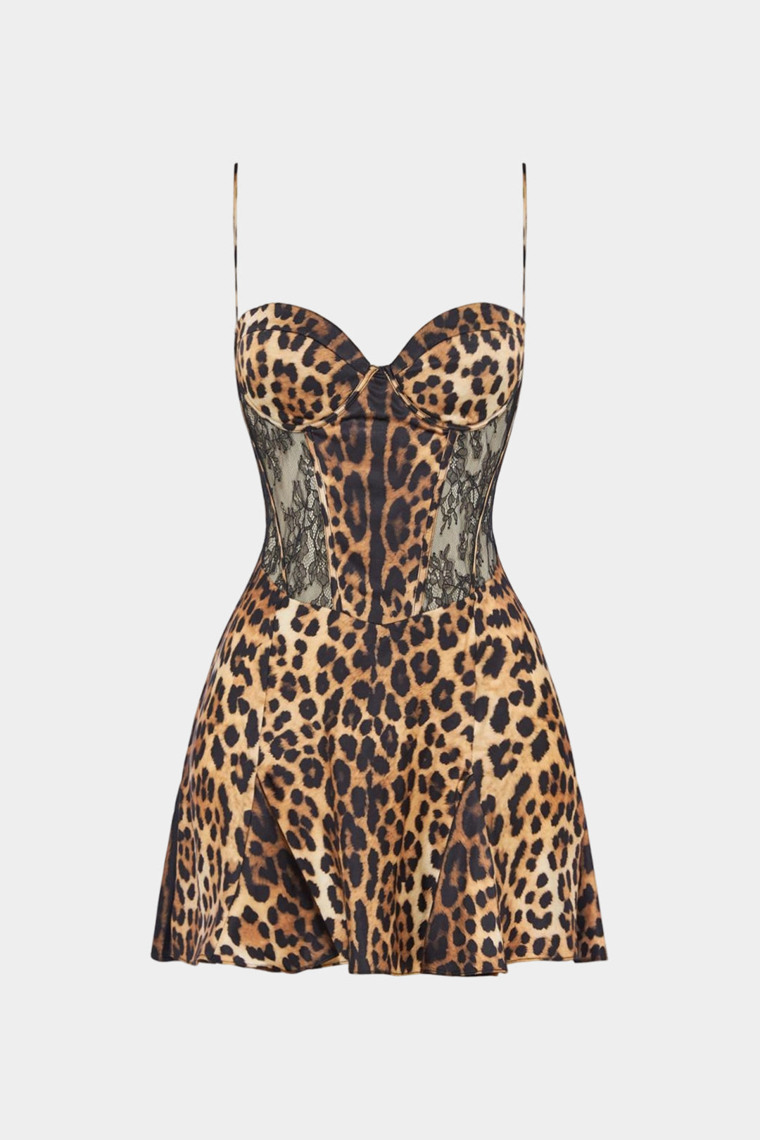 Leopard Print Satin Patchwork Mesh Sleeveless Mini Dress