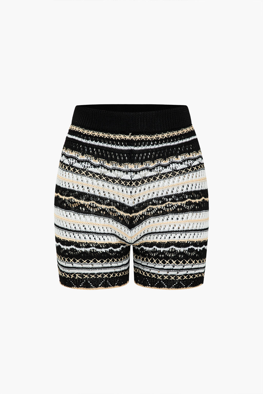 Knit Contrast Stripes Hollow Out Tank Top And Shorts Set