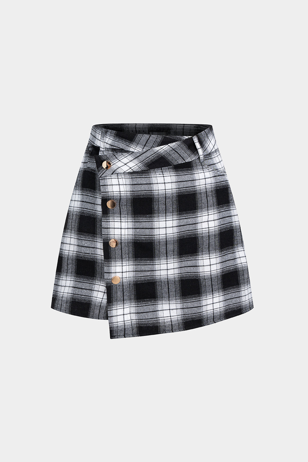 Plaid Print Asymmetrical Button Skirt