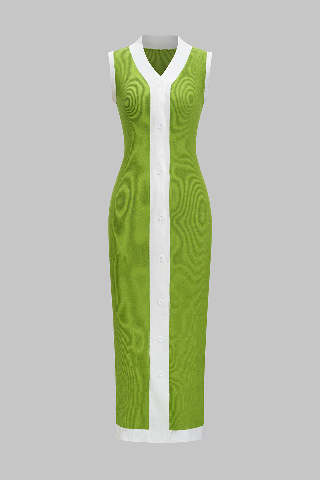 Contrast Print Knitted Patchwork Sleeveless Buttons Dress