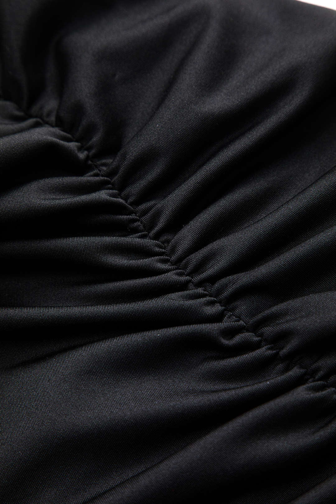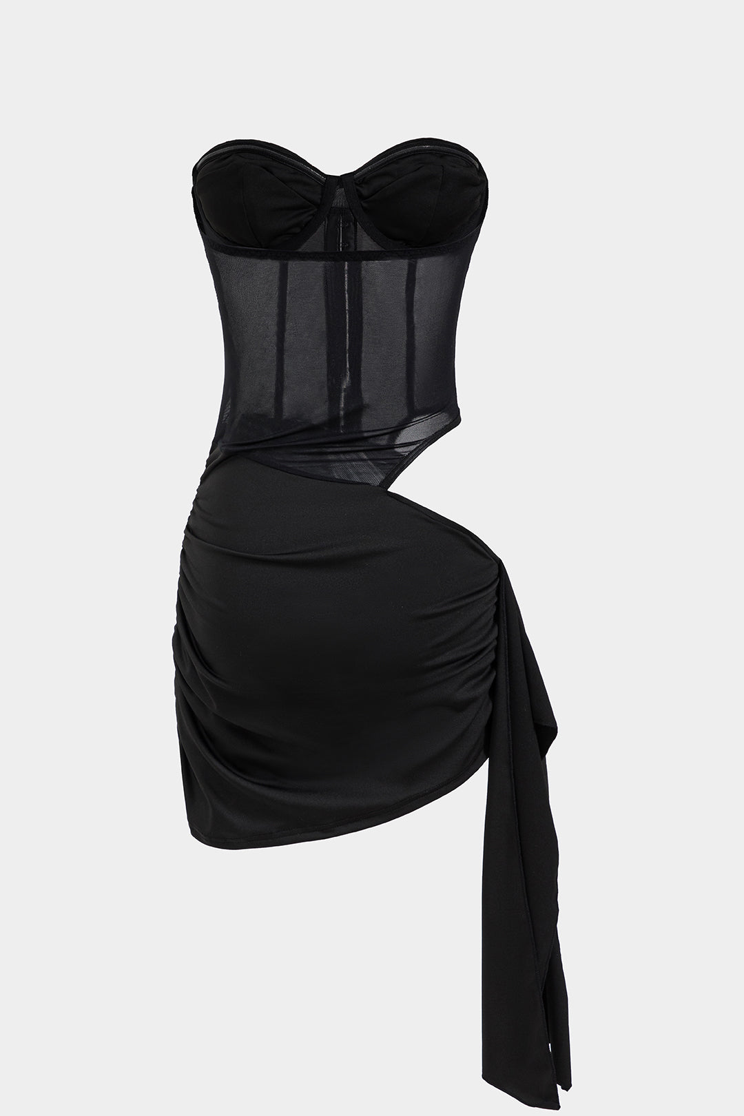 Mesh Cut Out Ruched Strapless Sleeveless Mini Dress