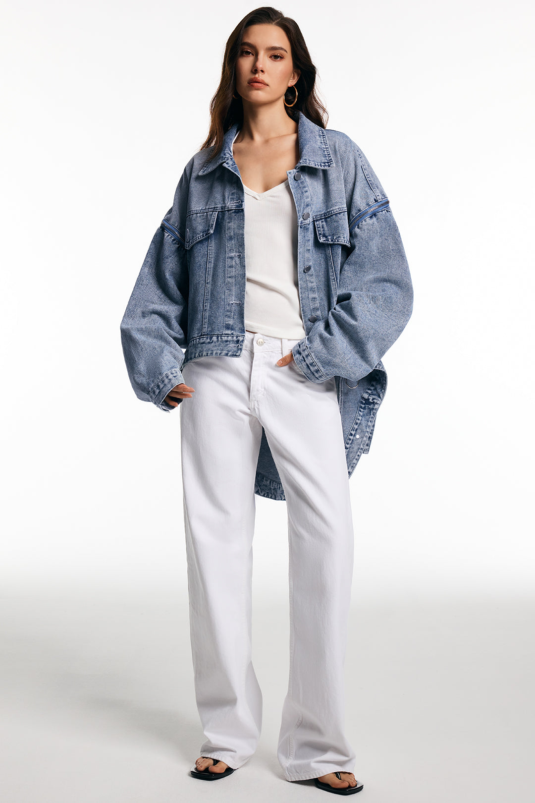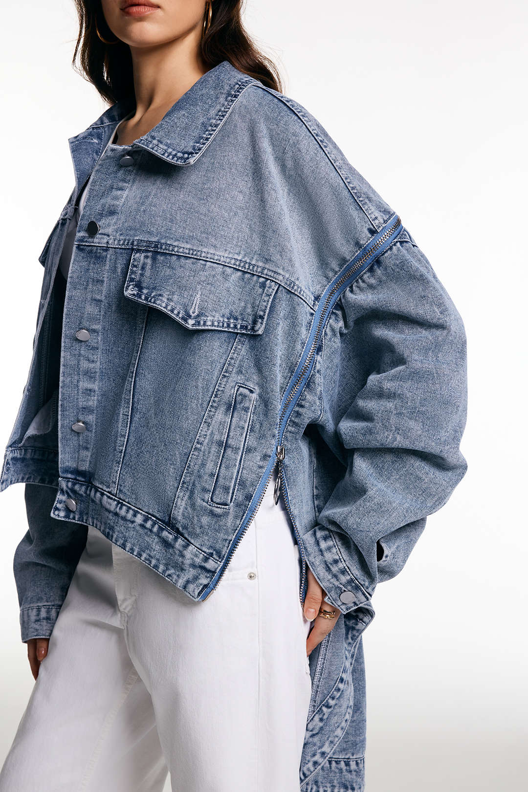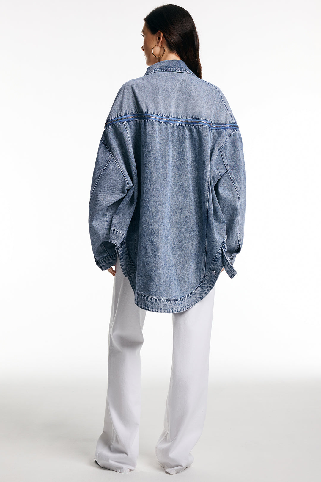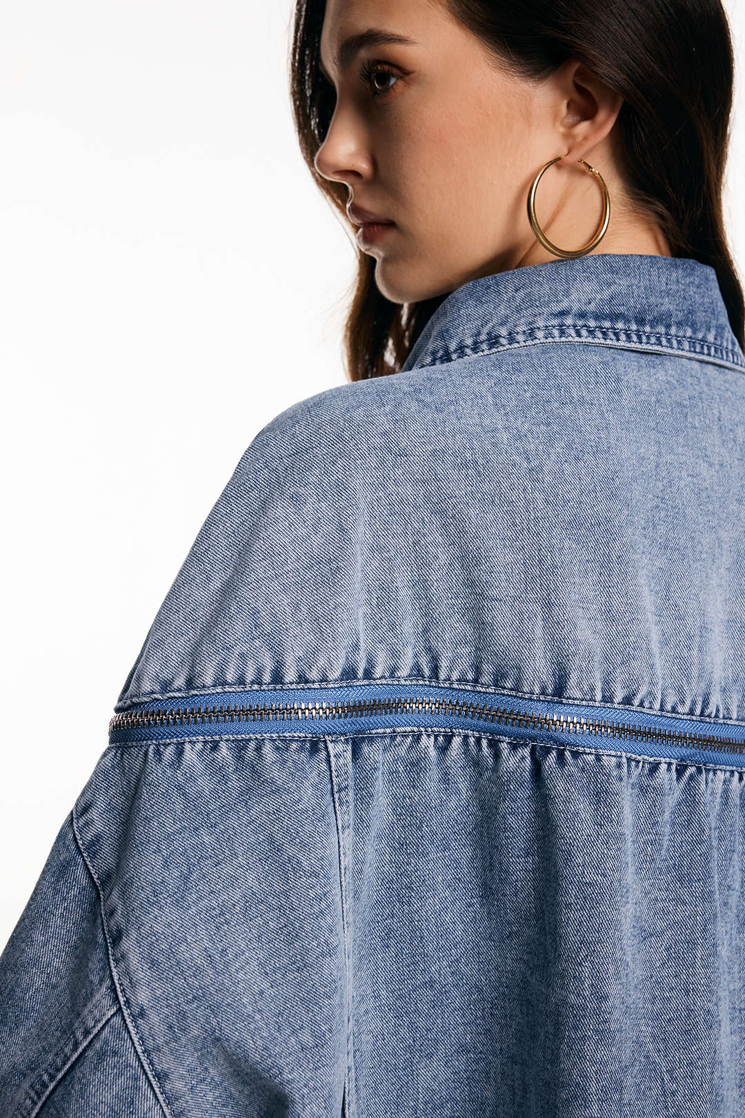Denim Zipper Batwing Sleeve Outerwear