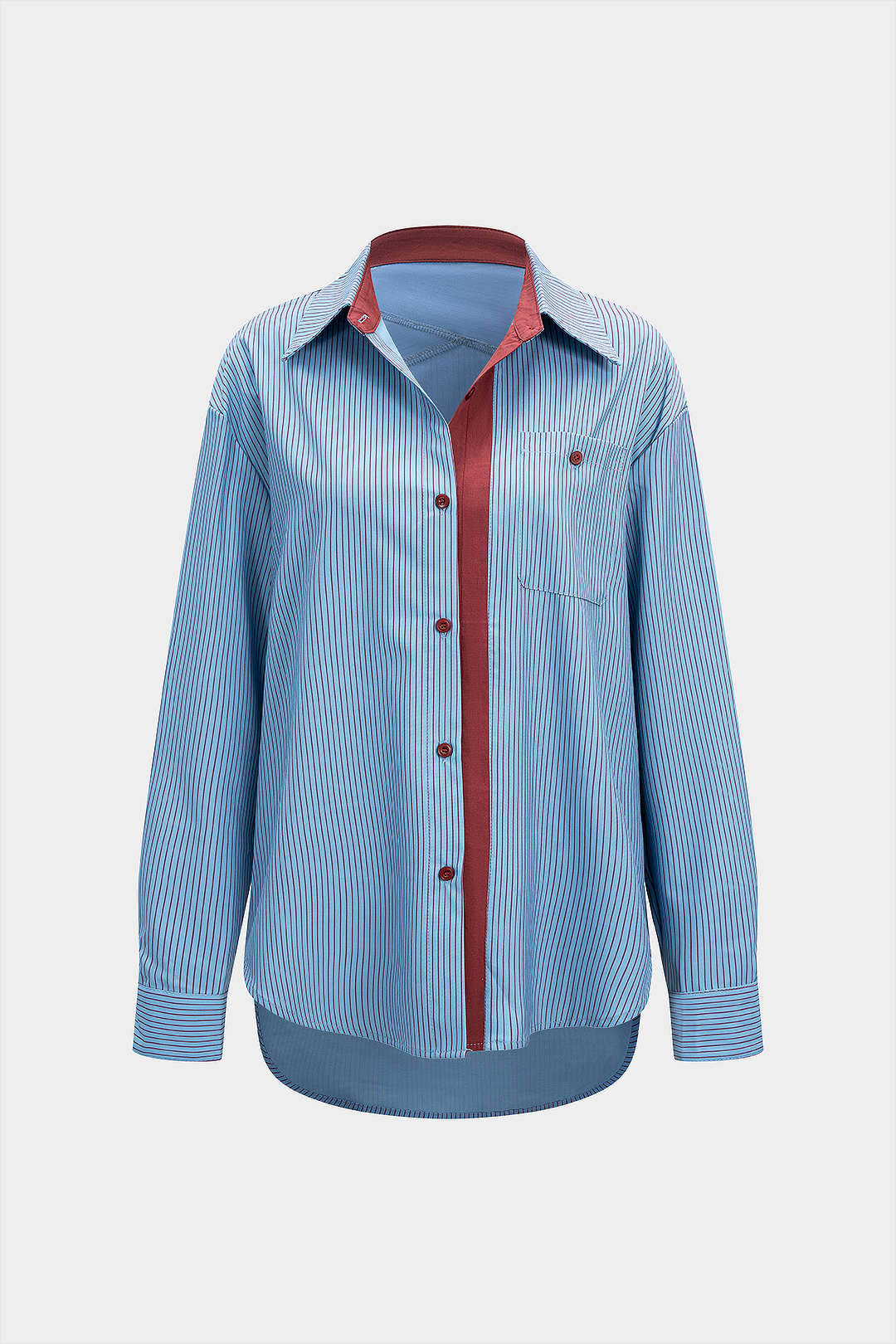 Stripes Contrast Print Button Long-Sleeve Shirt