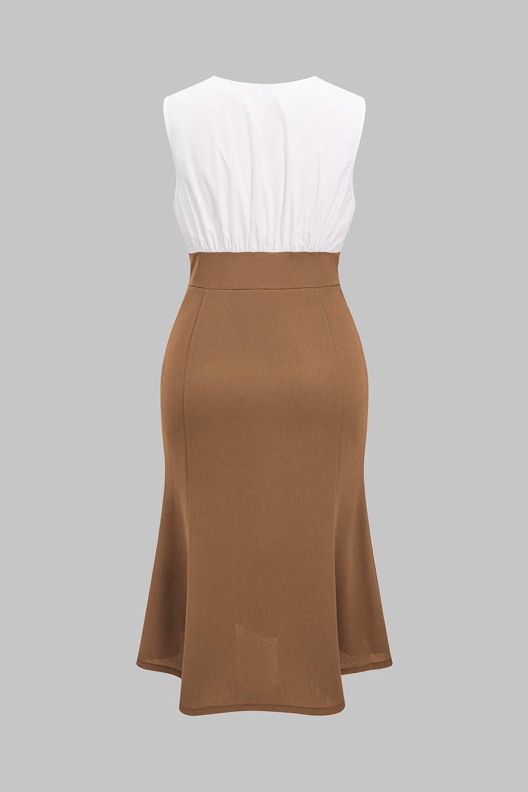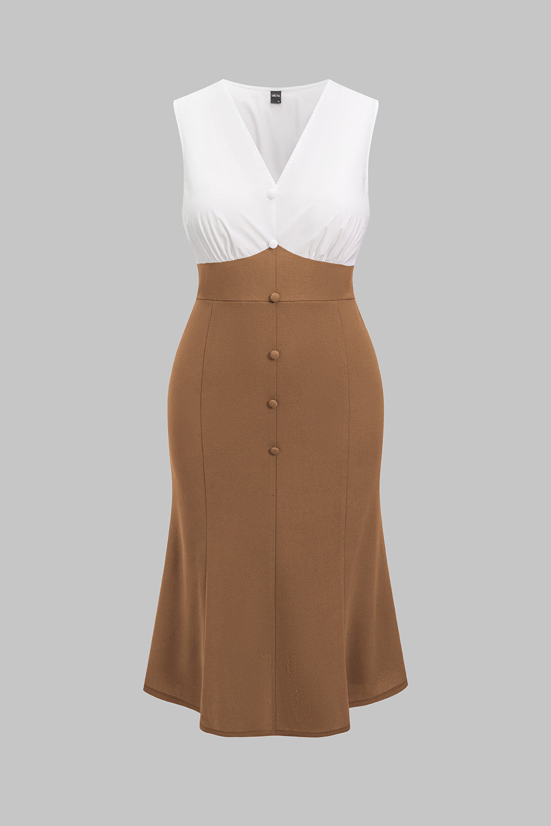 Plus Size Chiffon Patchwork V-Neck Button Ruched Sleeveless Midi Dress