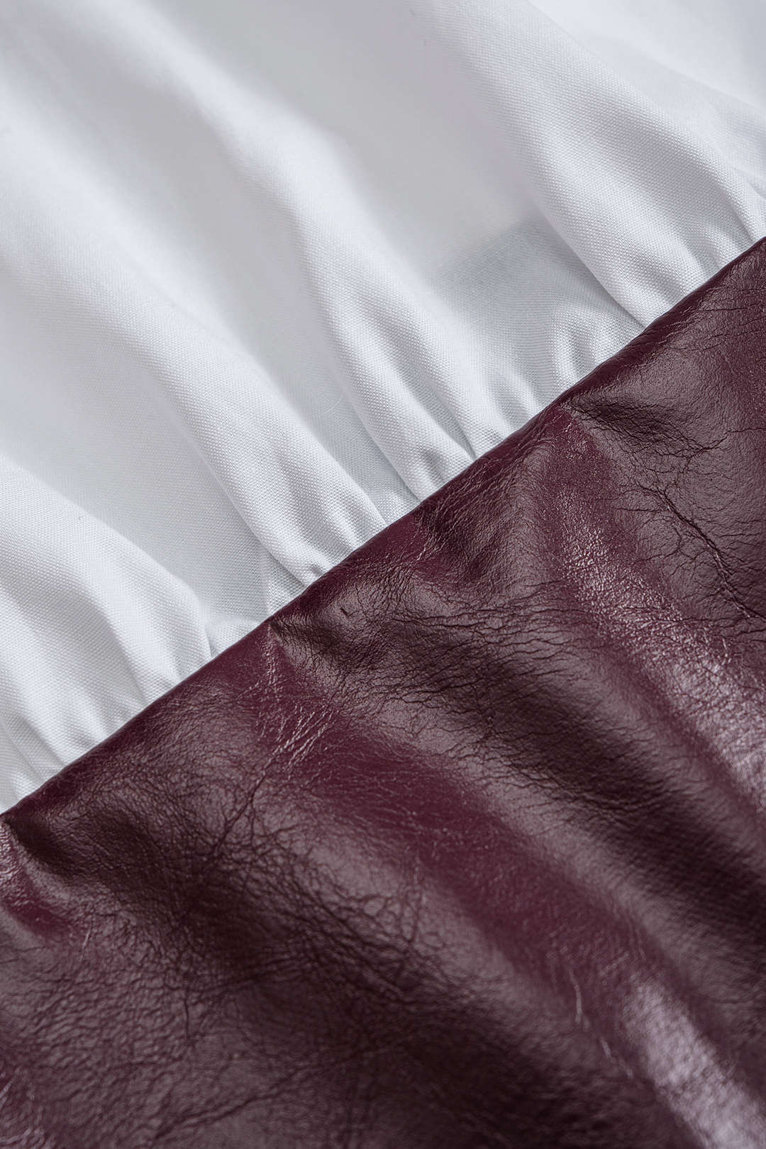 Faux Leather Patchwork Hook And Eye Waist-Cinching Long-Sleeve Shirt