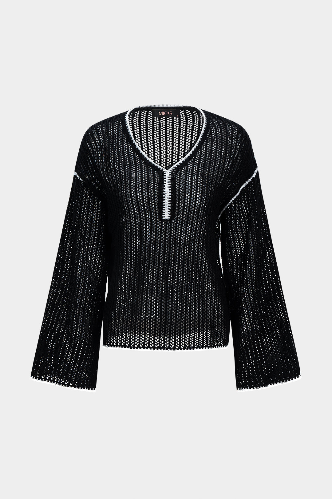 V-Neck Knit Hollow Out Long Sleeve Cover Up