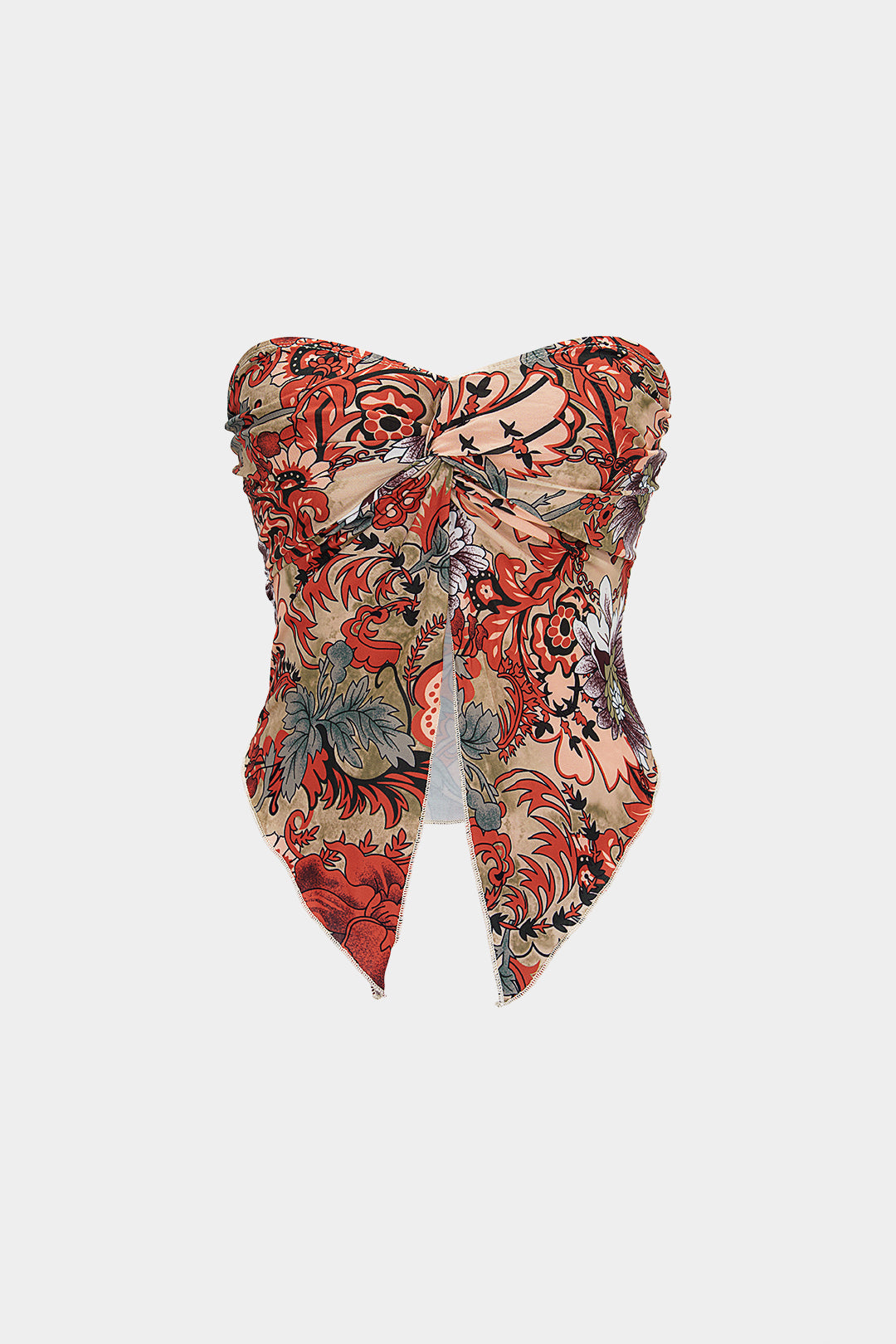 Artistic Print Ruched Tube Top