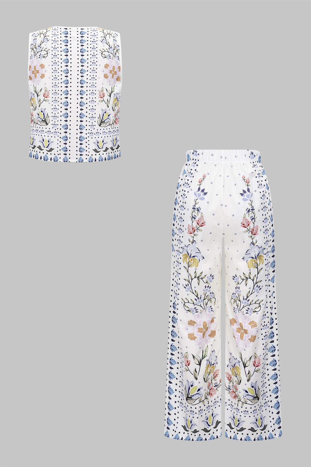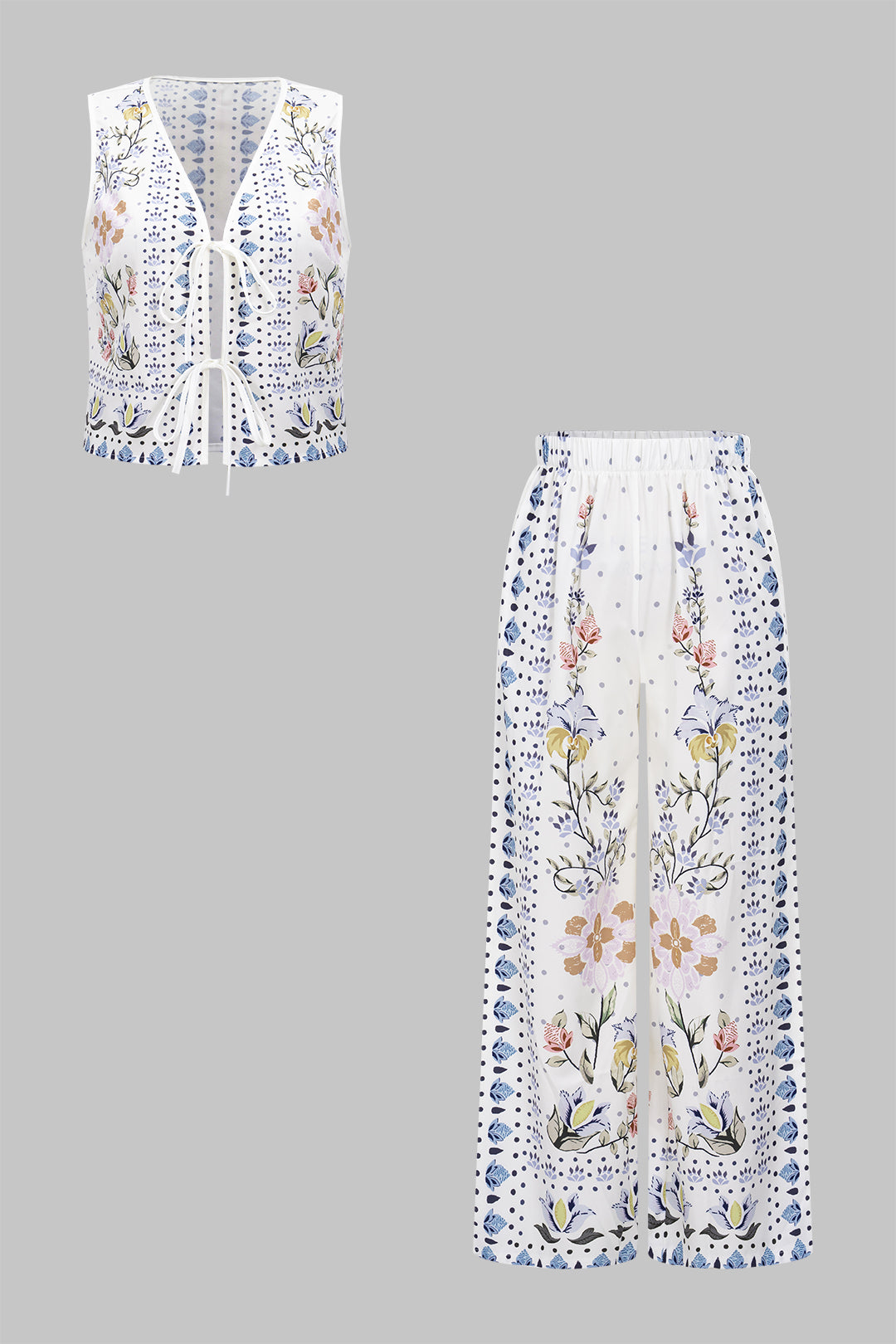 Floral Print Tie-Up Tank Top And Wide Leg Trousers Set