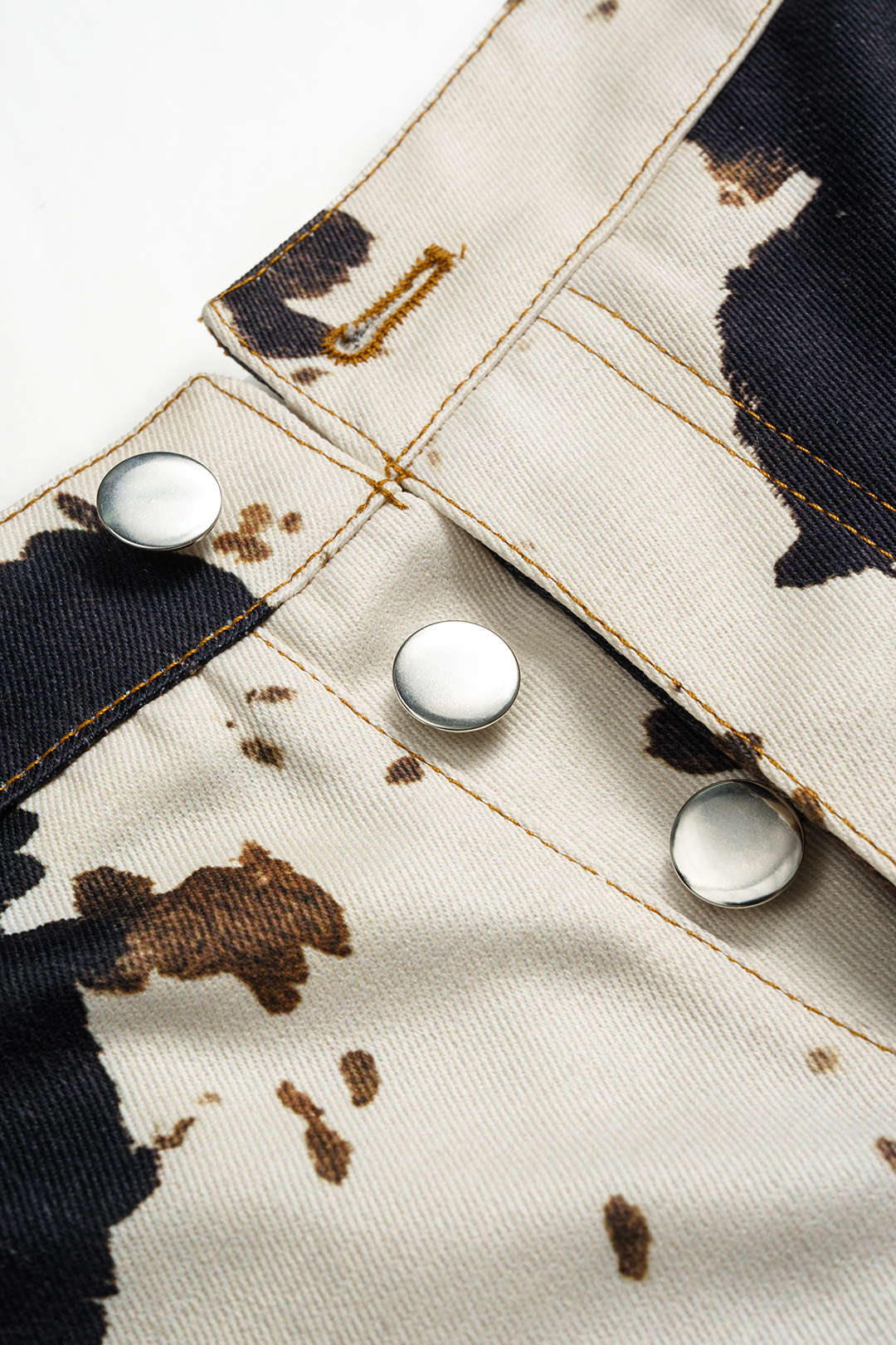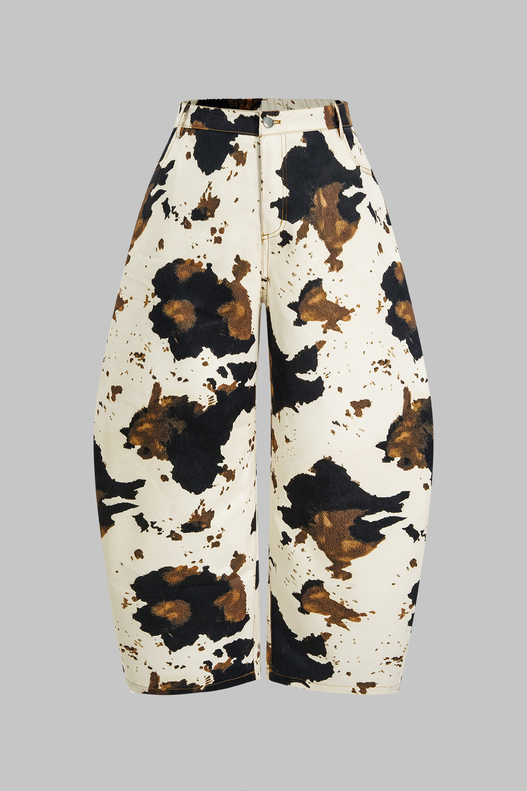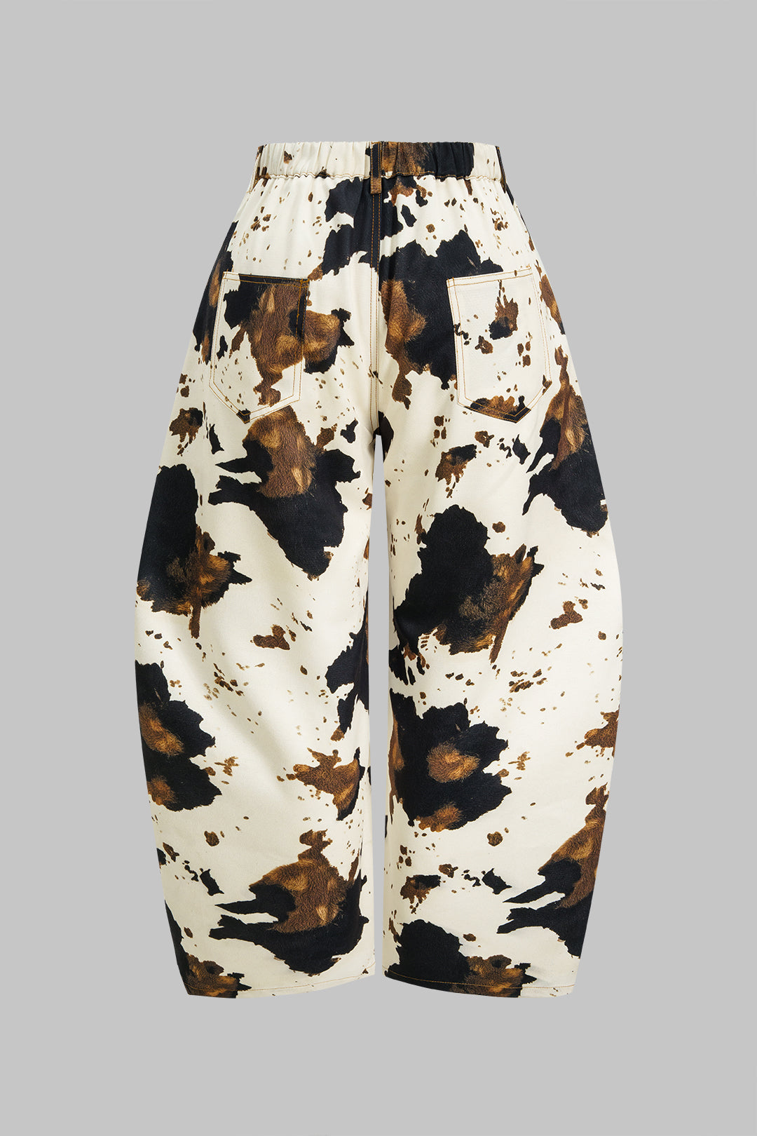 Plus Size Splatter Contrast Print Button Wide Leg Pants