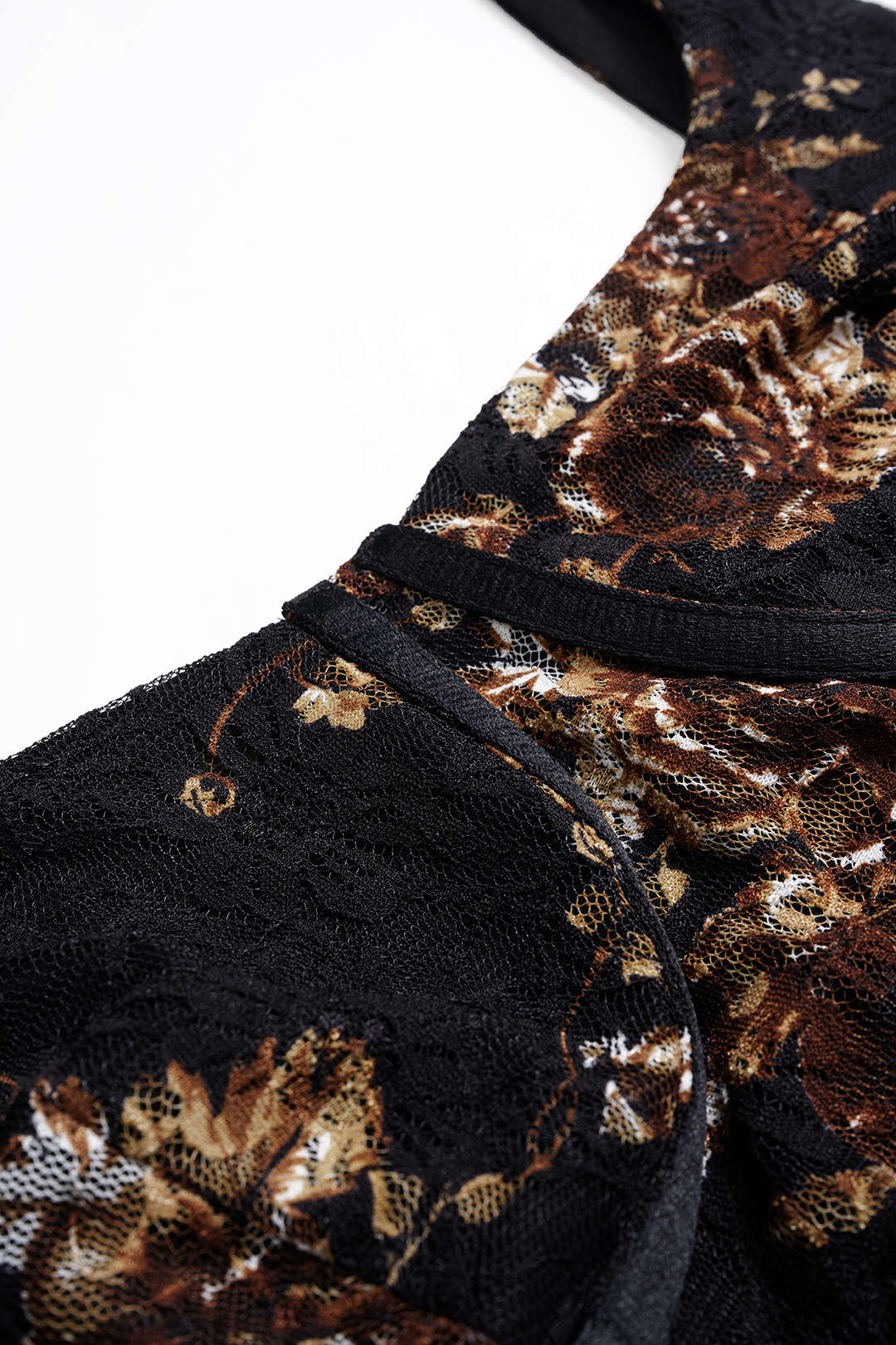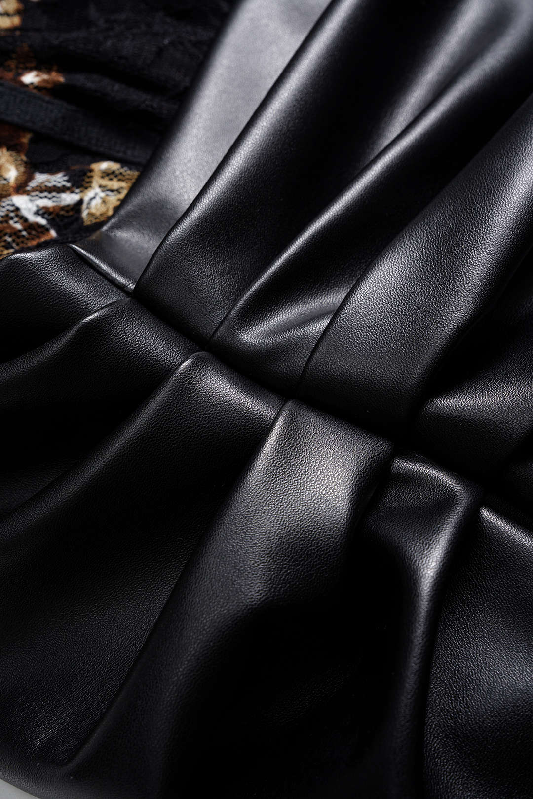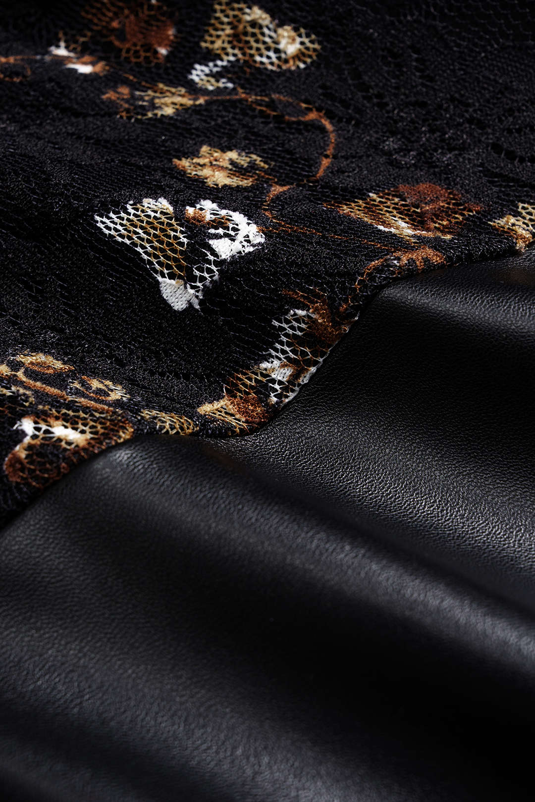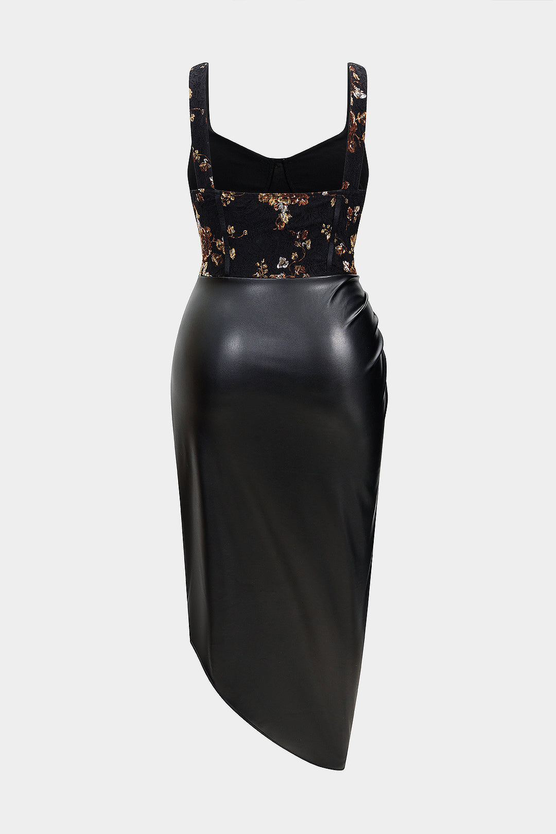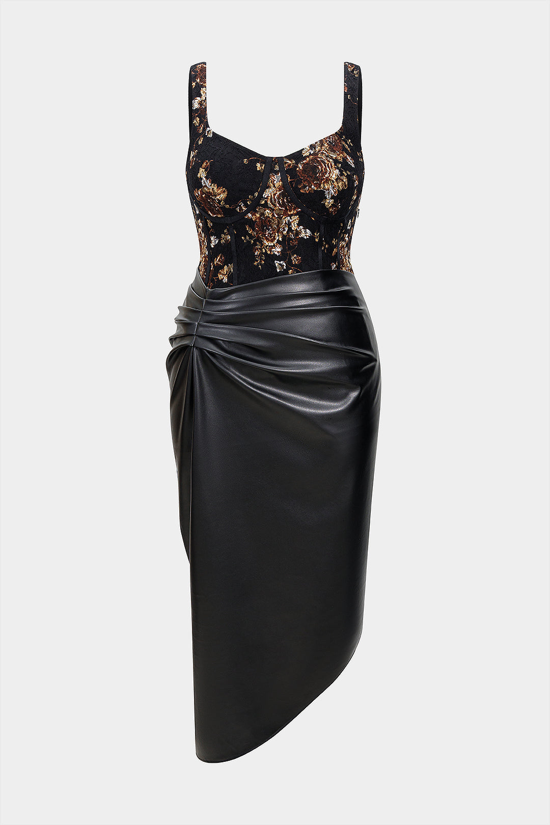 Plus Size Floral Print Faux Leather Patchwork Bustier Sleeveless Maxi Dress