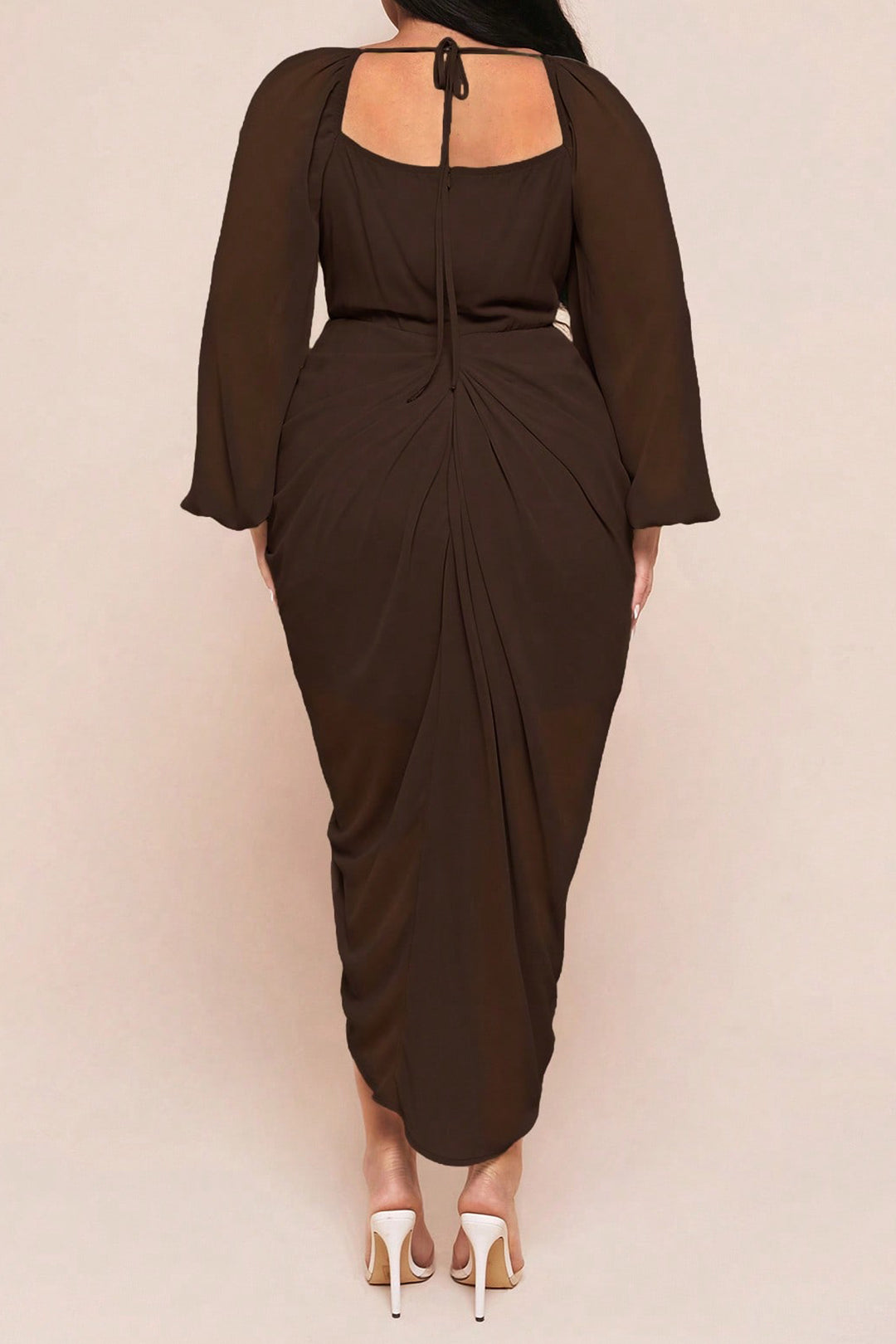 Plus Size Ruched Side Slit Long Sleeve Midi Dress