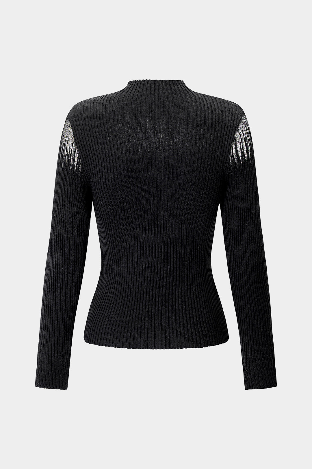 Knit Lace Patchwork Mock Neck Long-Sleeve Top