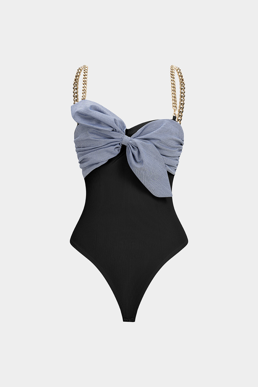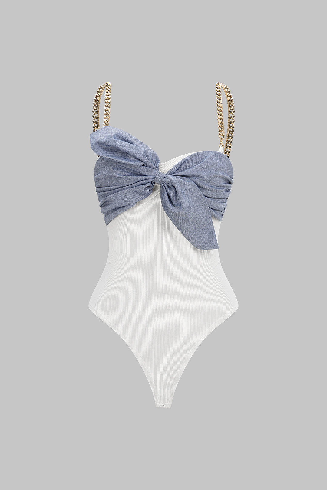 Patchwork Metallic Chain Knot Sleeveless Bodysuit