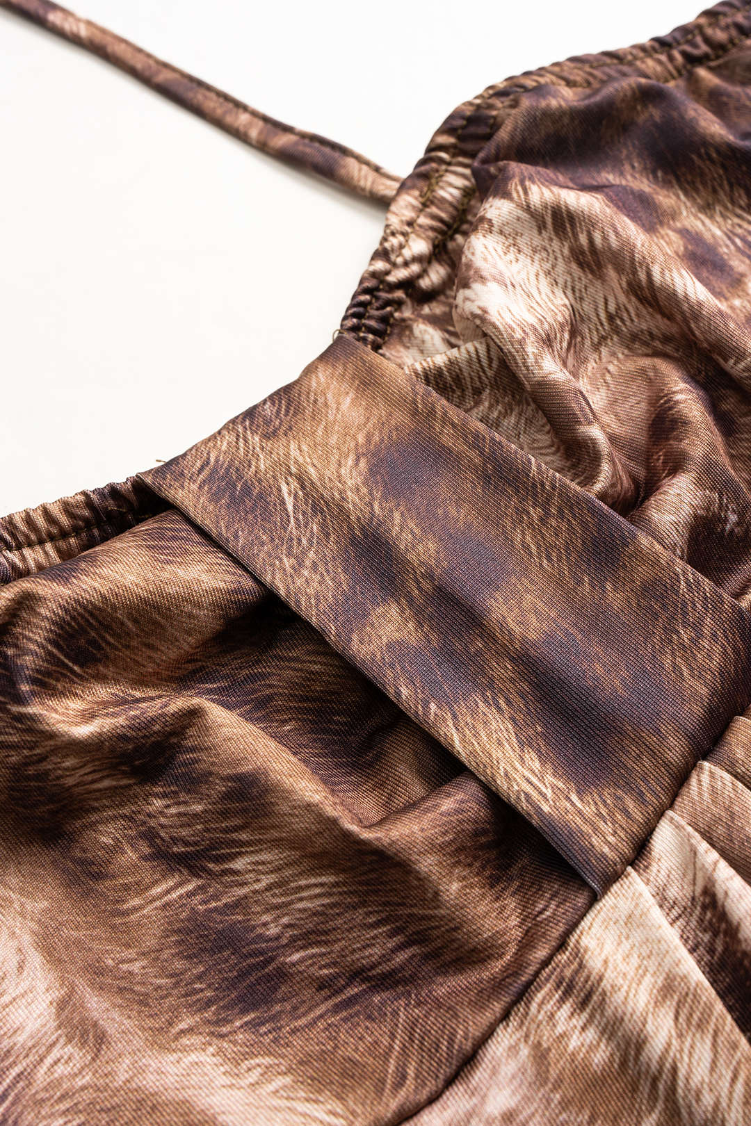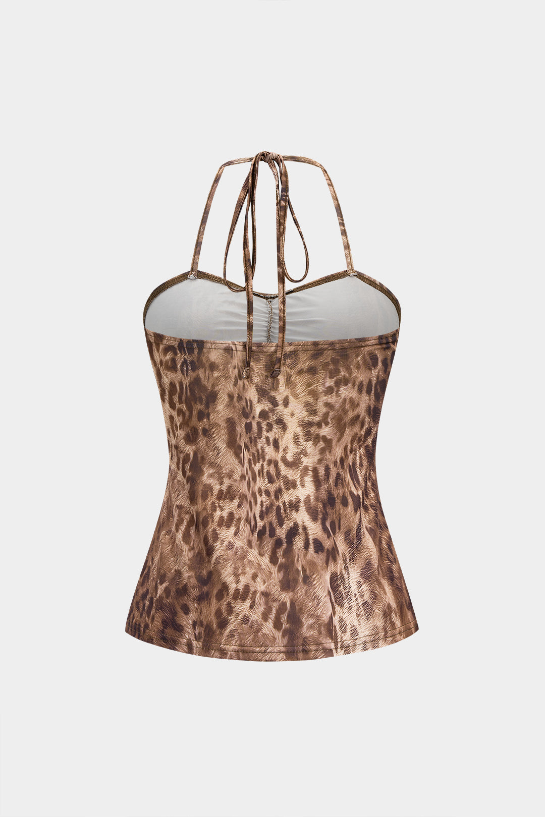 Leopard Print Tie-Back Halter Neck Strapless Top