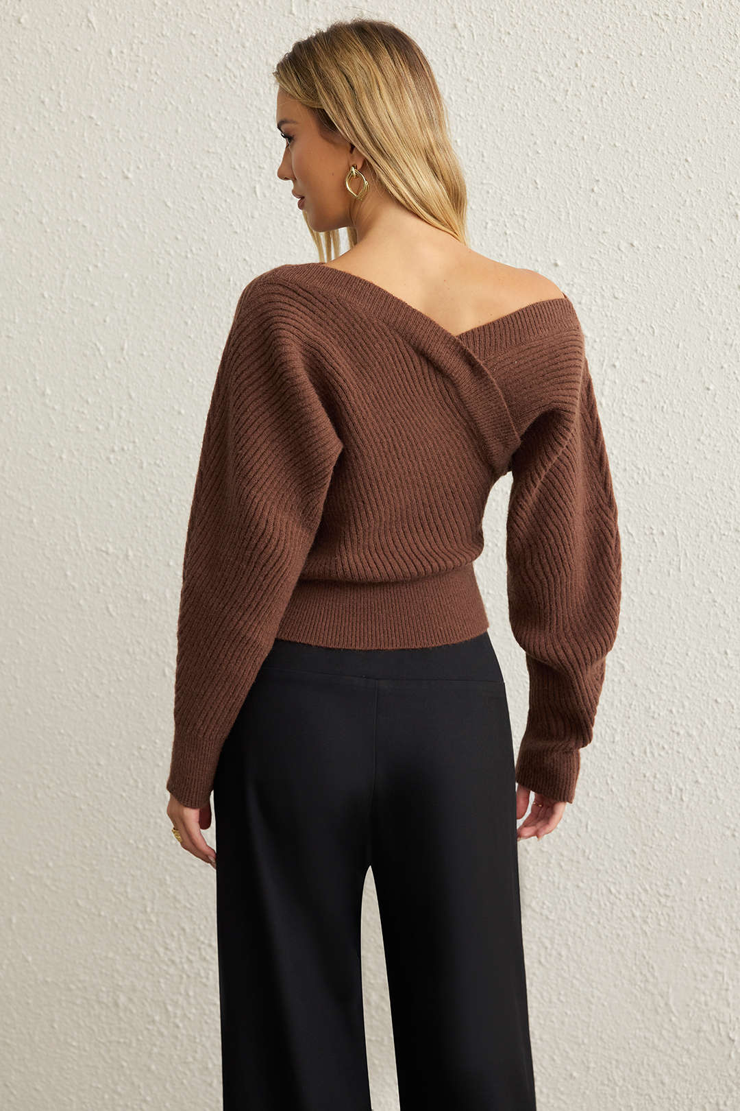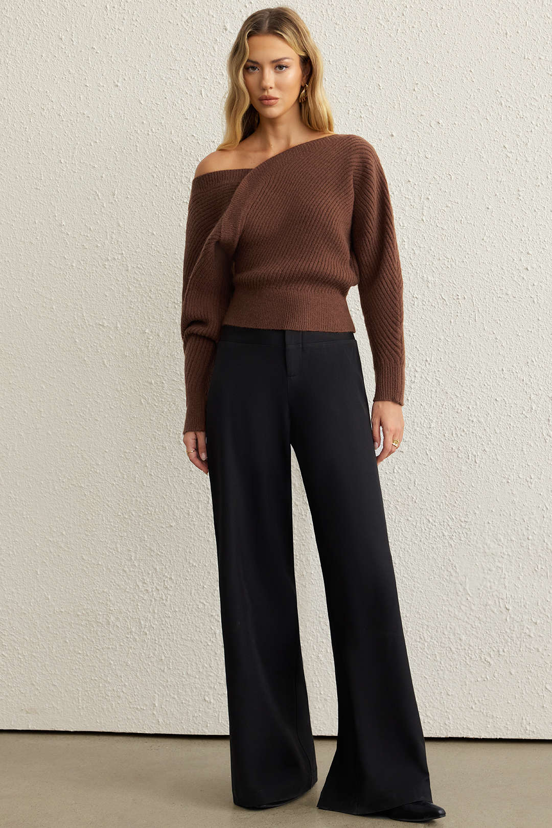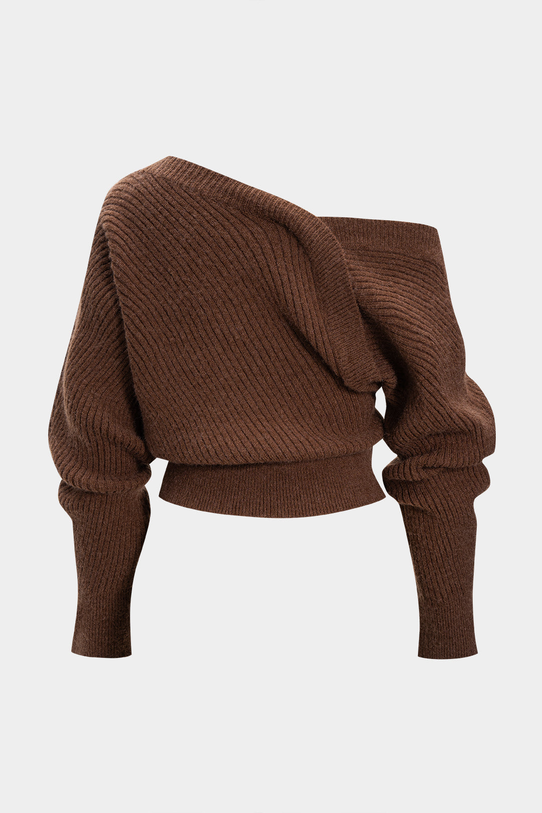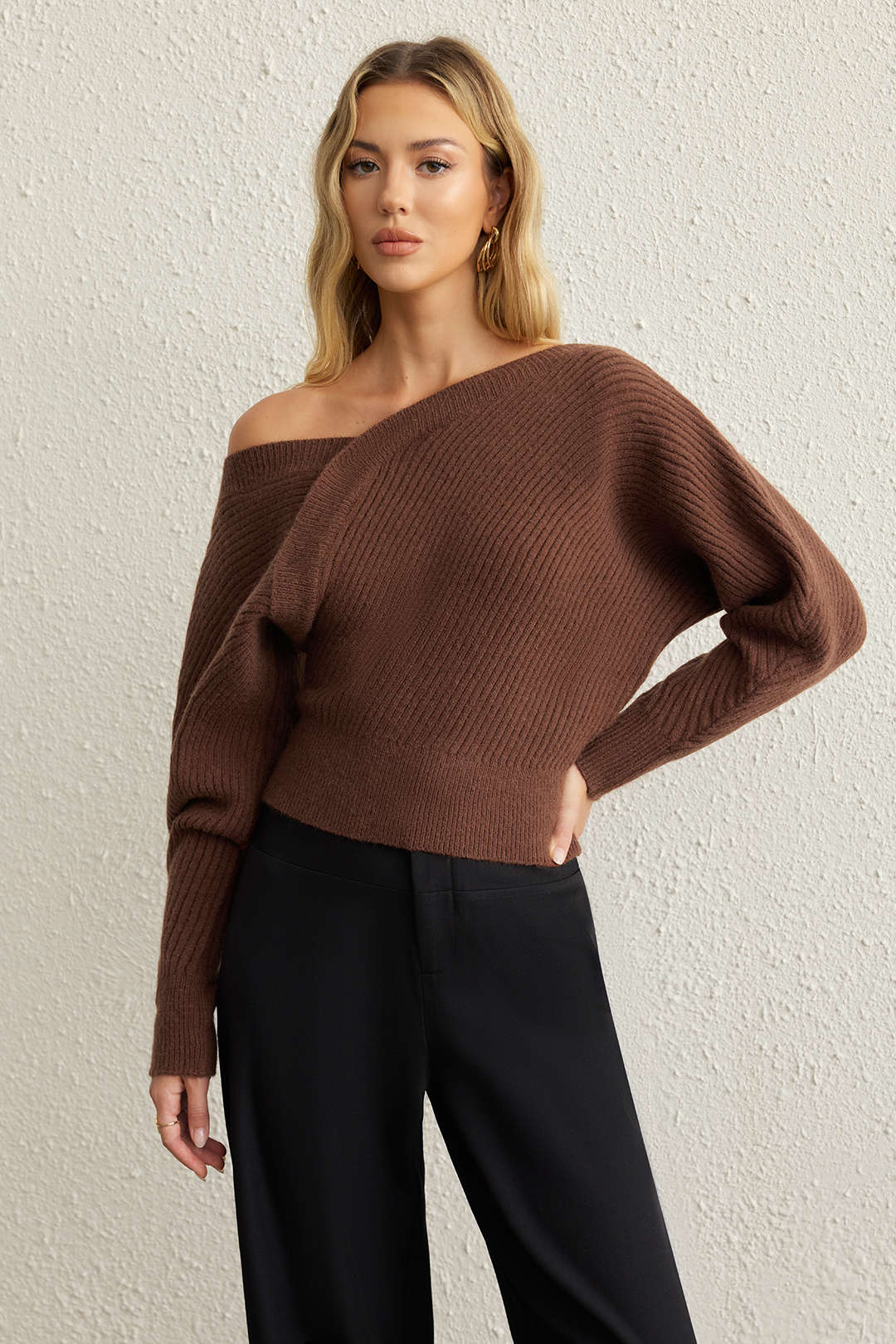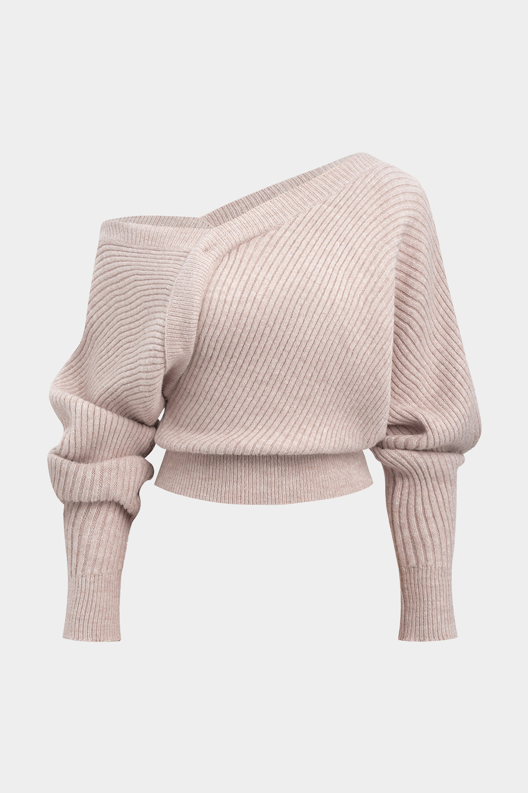 Knit Asymmetrical Ribbed Long-Sleeve Top