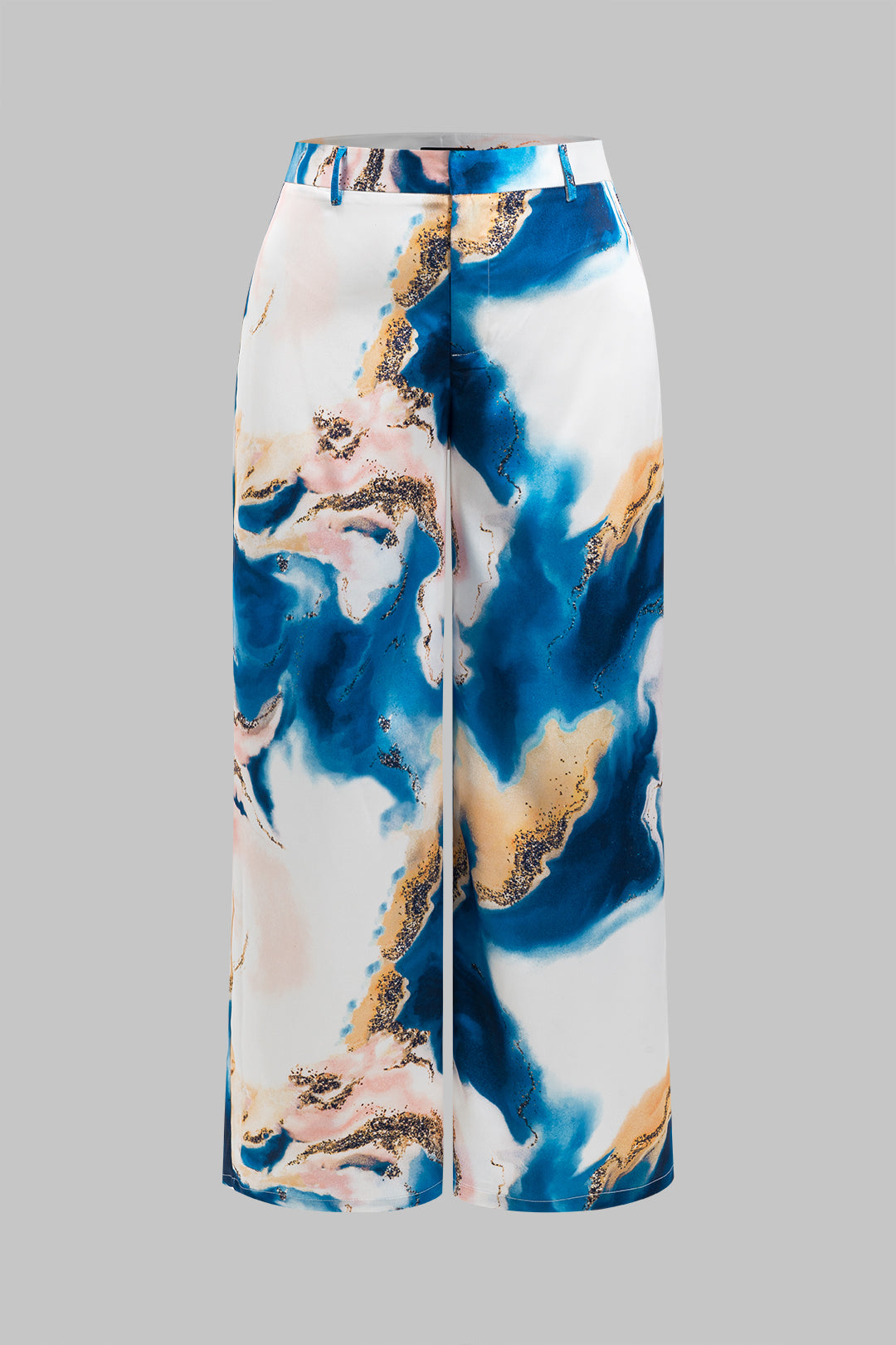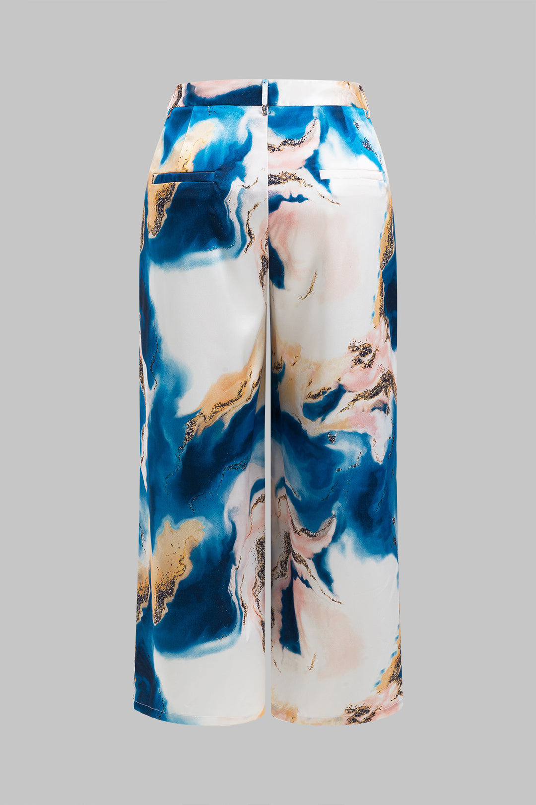 Plus Size Abstract Print Satin Pocket Wide Leg Trousers