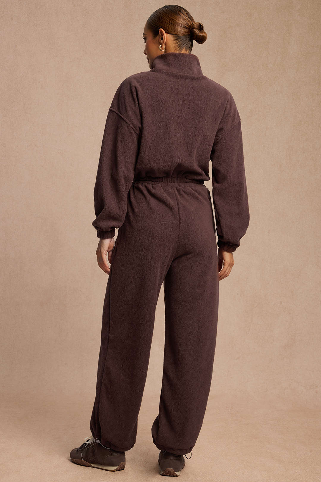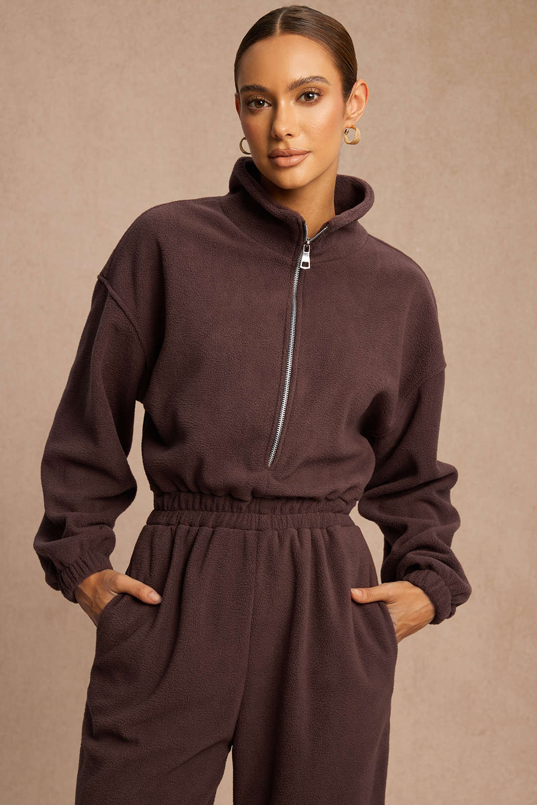 Shirred Drawstring Zipper Long Sleeve Jumpsuit