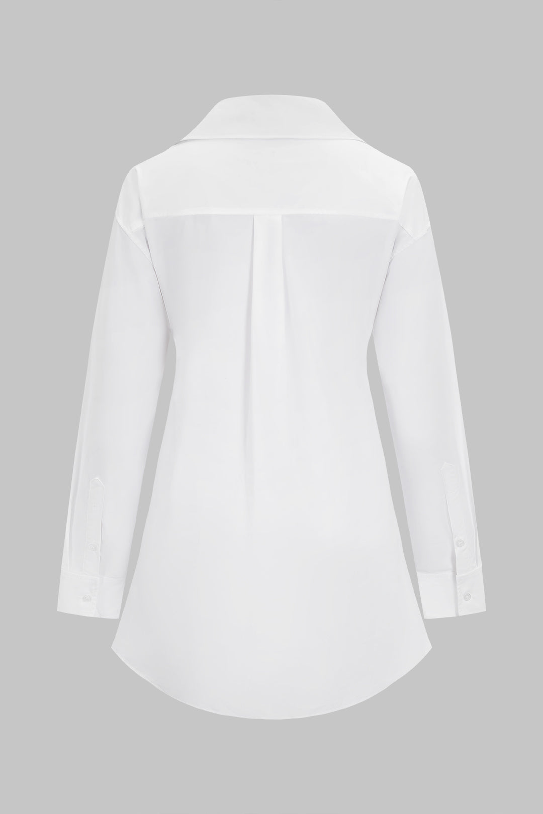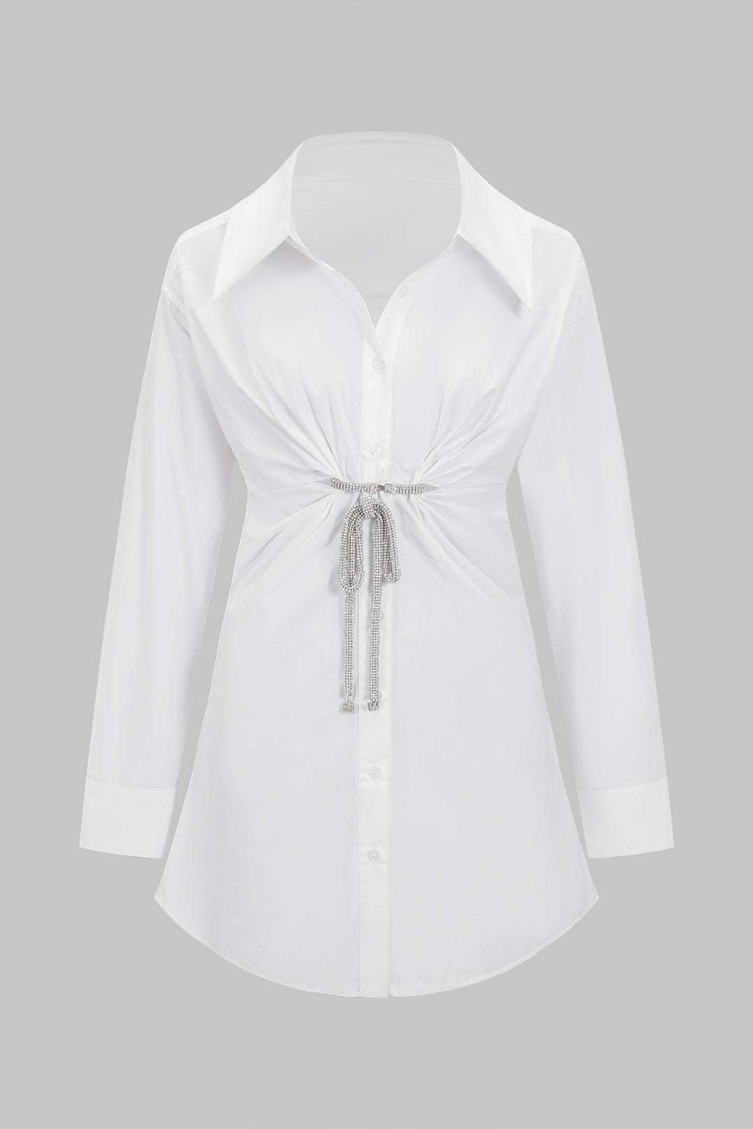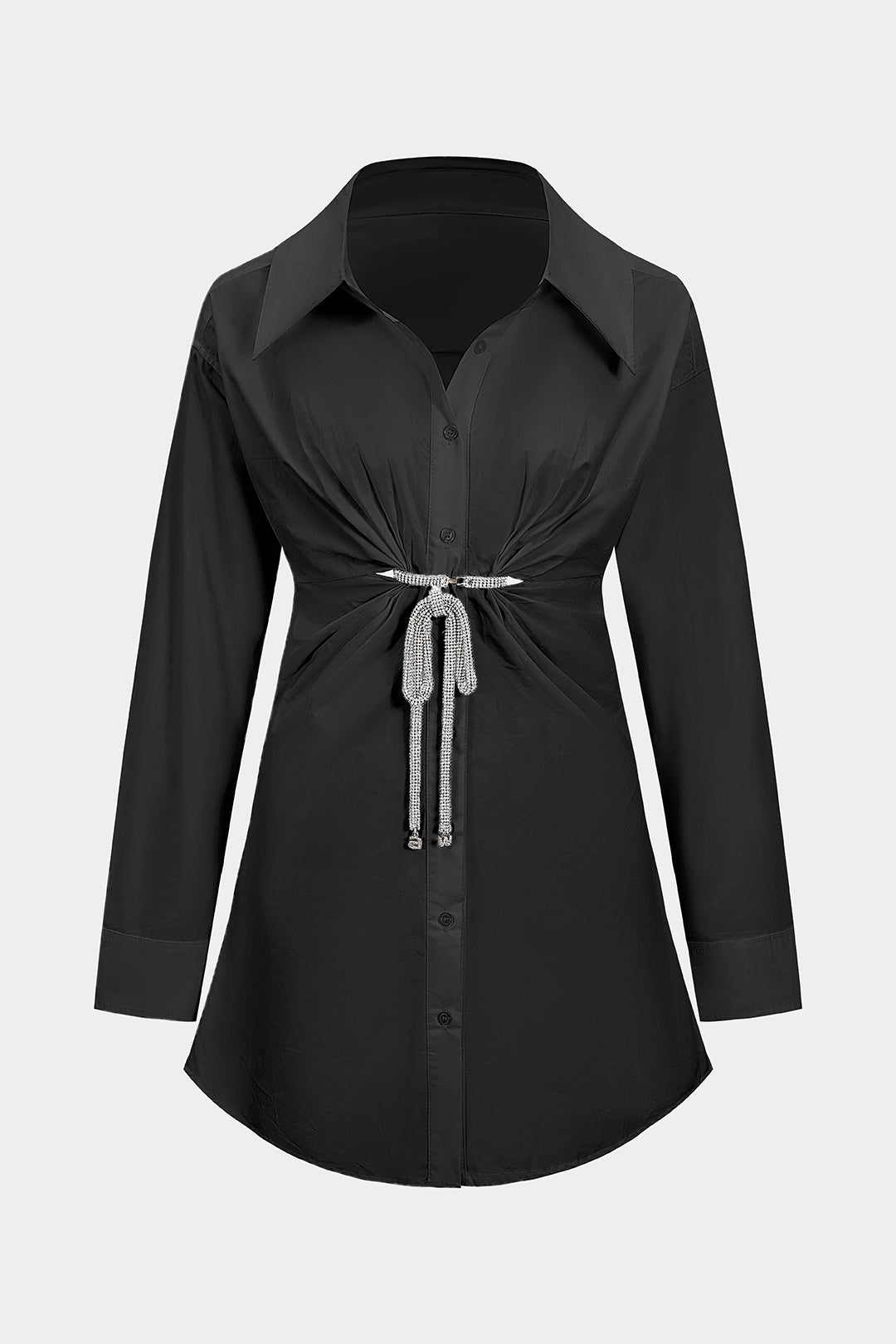 Solid Metallic Decor Button Long Sleeve Mini Dress