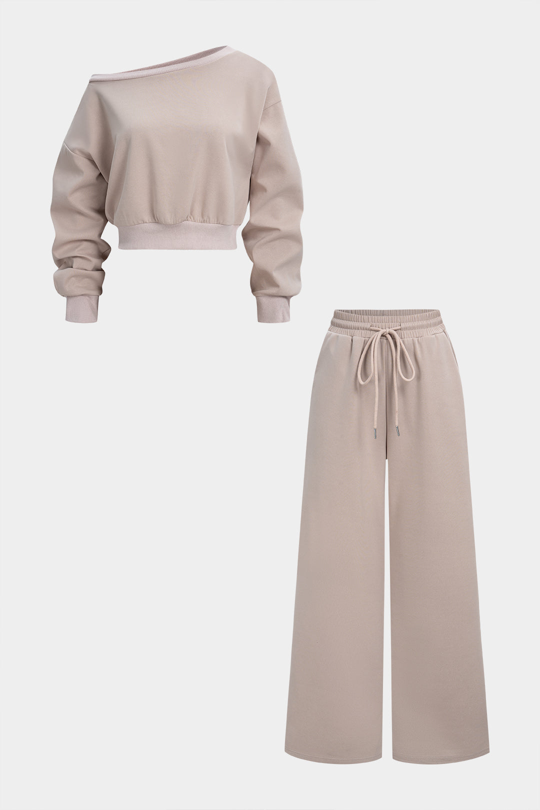 One Shoulder Sweatshirt And Drawstring Pants Set