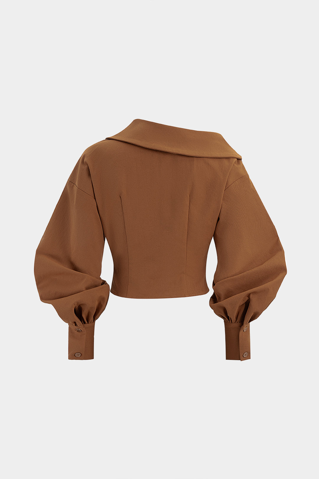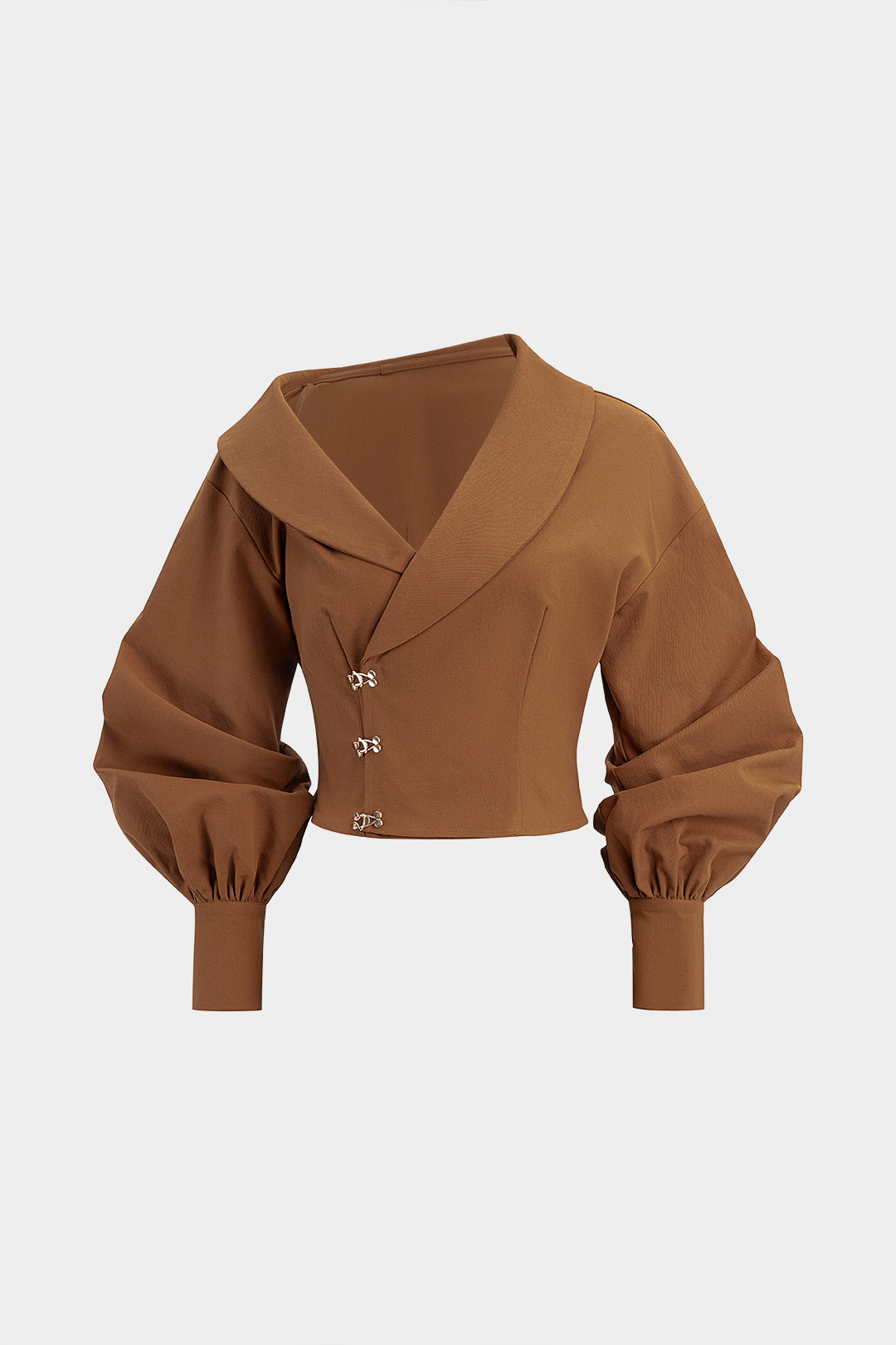 Metallic Buckle Asymmetrical Long-Sleeve Shirt