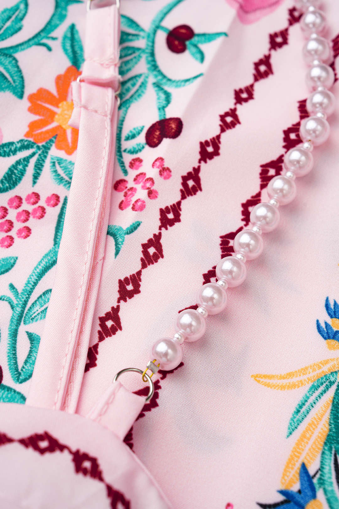 Floral Print Beaded Slip Sleeveless Midi Dress