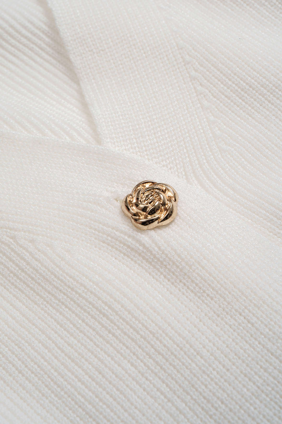 Knit Metallic Button V-Neck Long Sleeve Dress