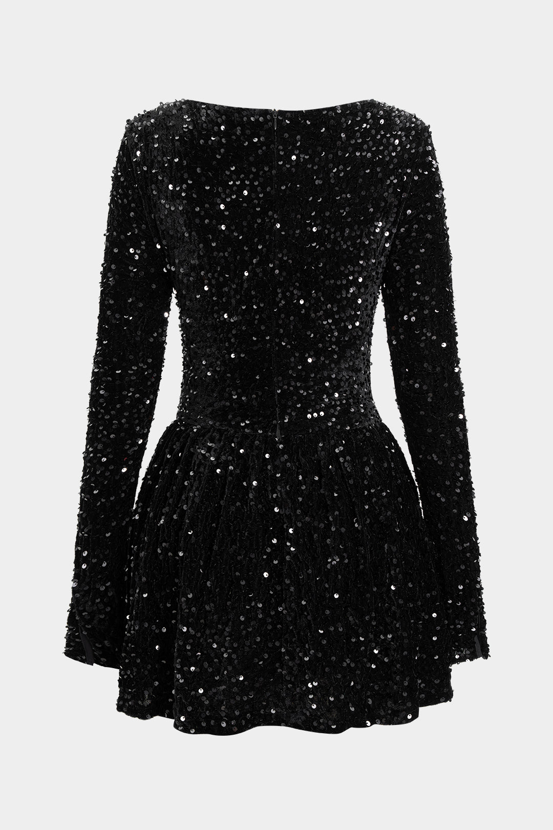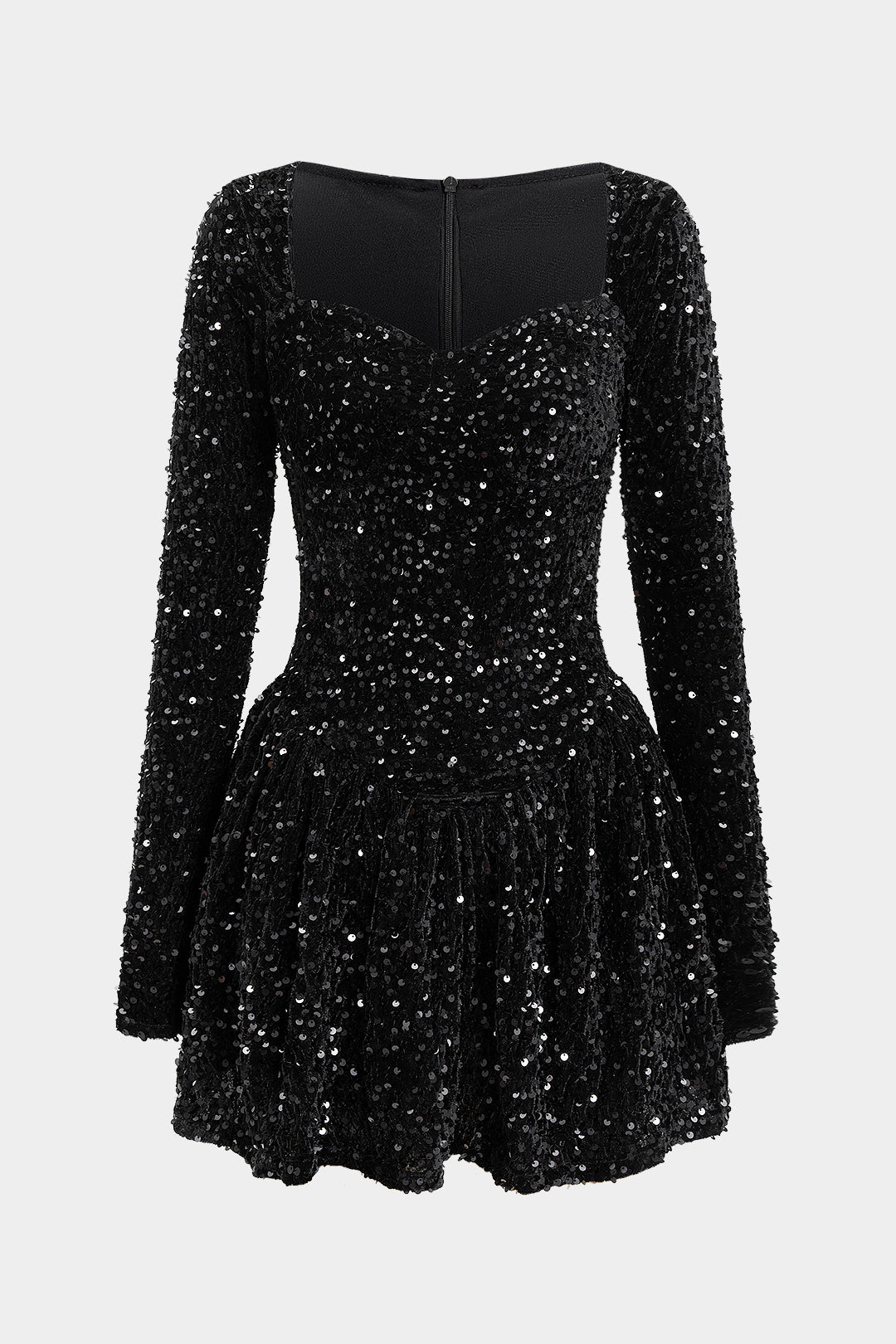 Sequin Ruched Zipper Long Sleeve Mini Dress