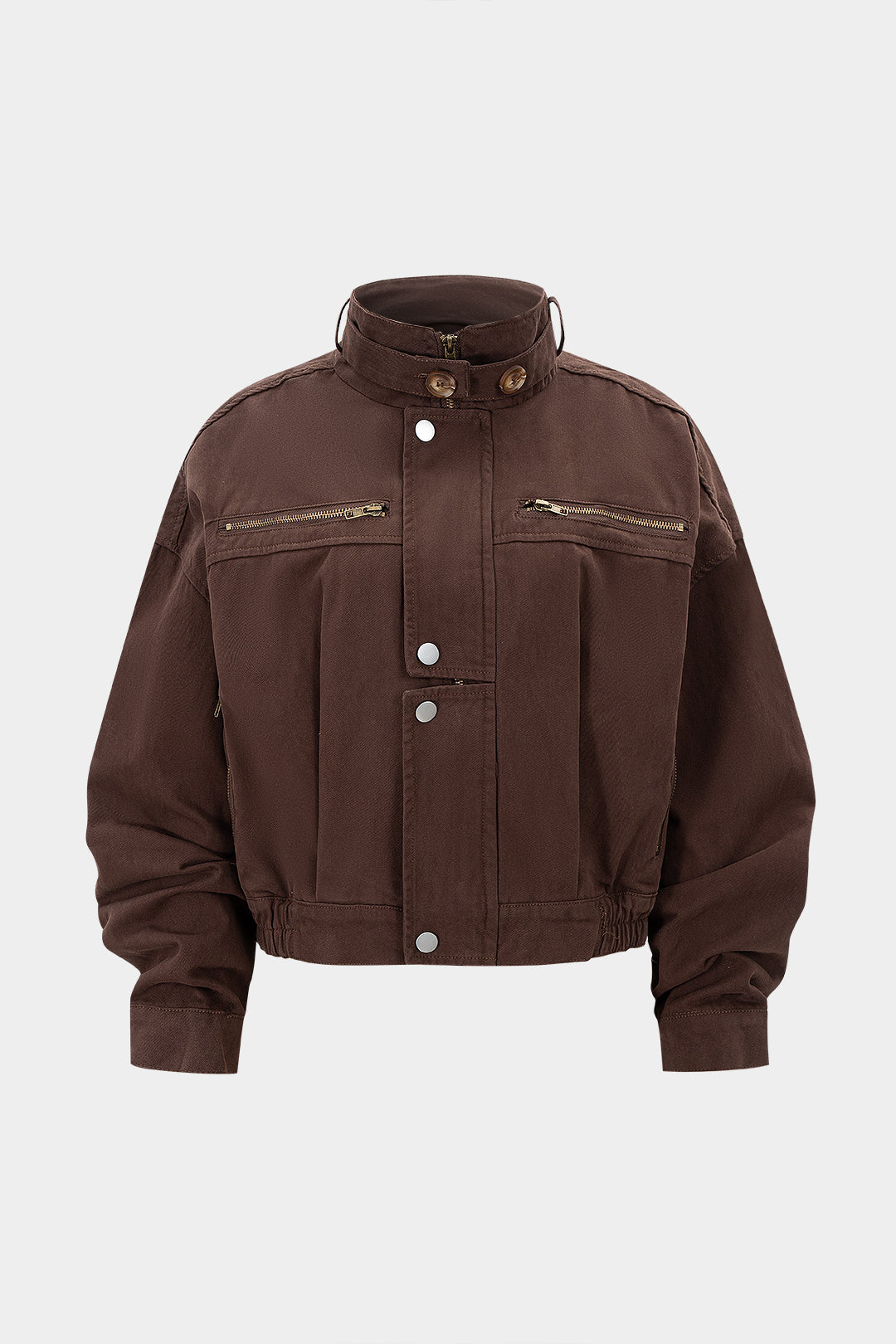 Denim Button Zipper High collar Outerwear