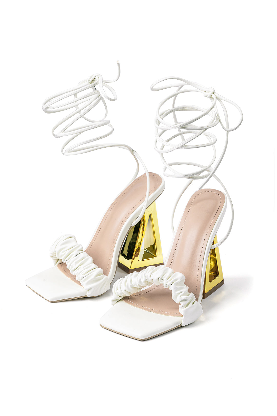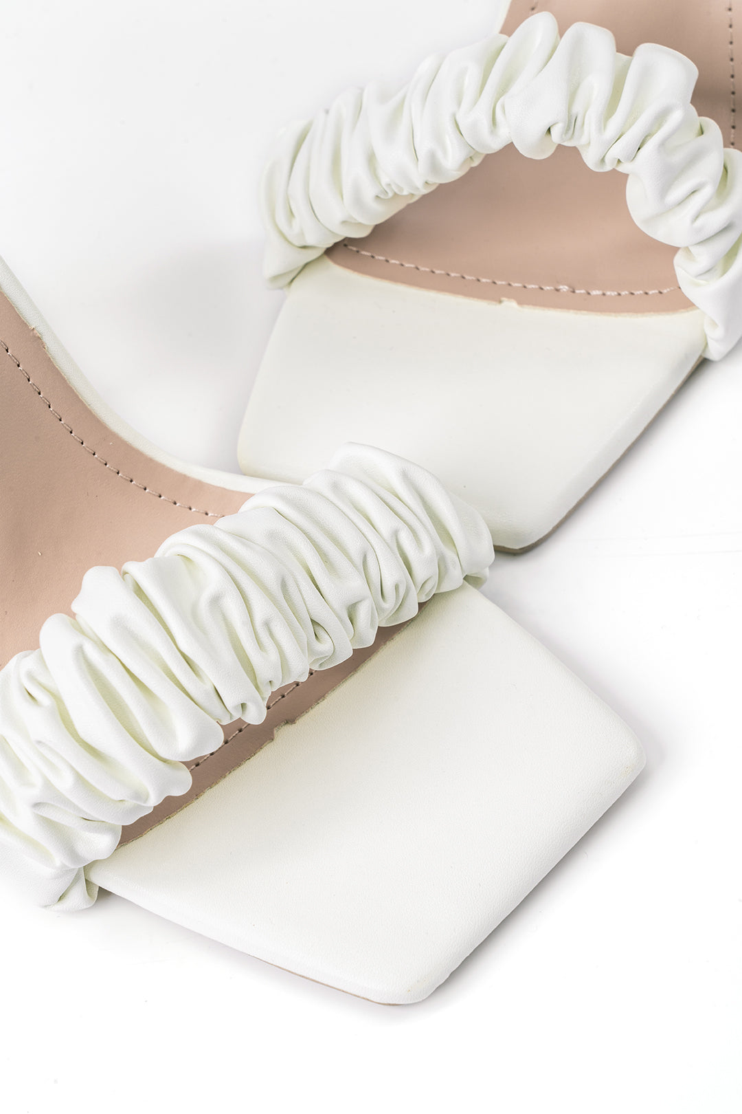 Faux Leather Ruched Crossed Strappy Open-Toe Sandals
