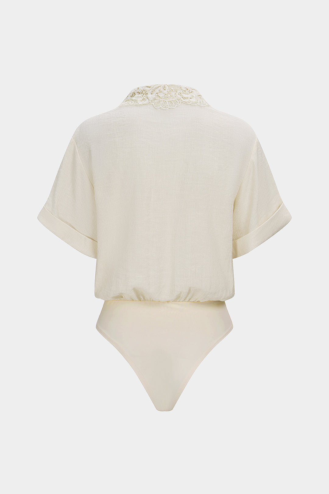 Patchwork Jacquard Lapel Short Sleeve Pocket Bodysuit
