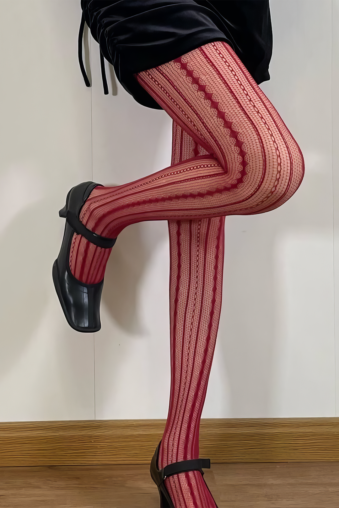 Retro Diamond Vertical Stripes Hollowed-Out Tights