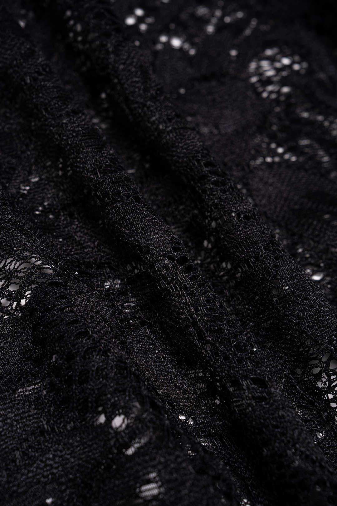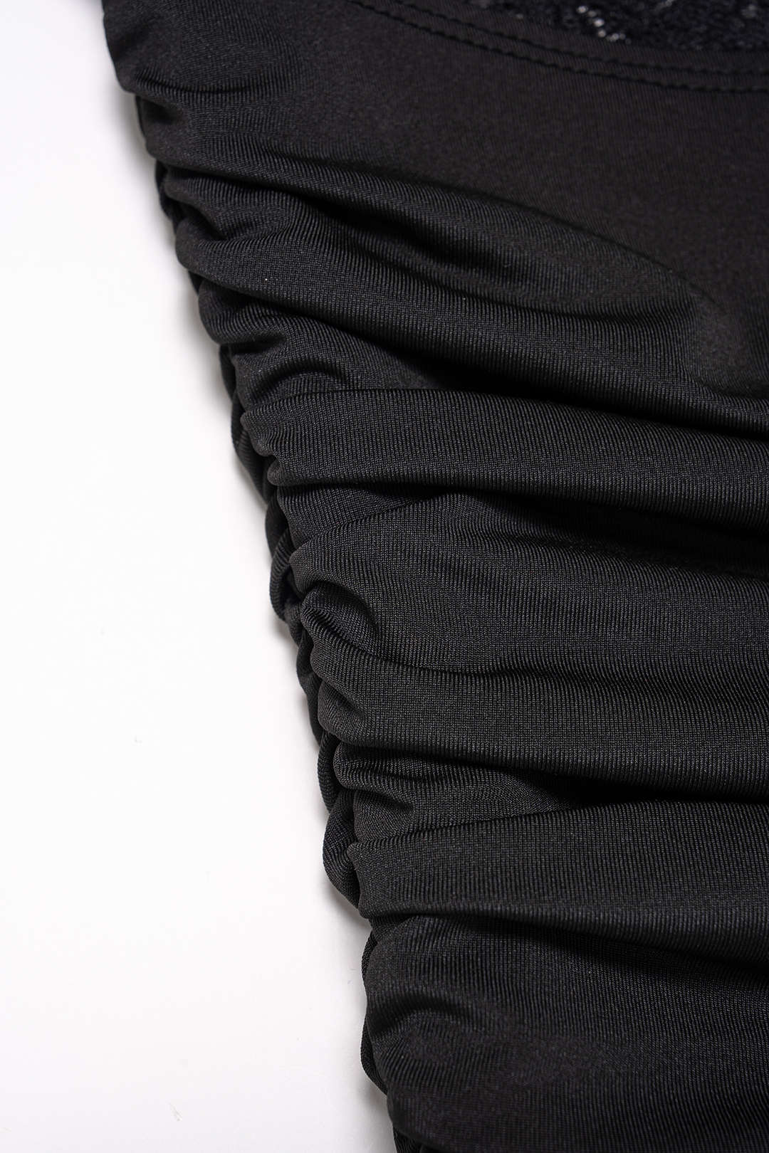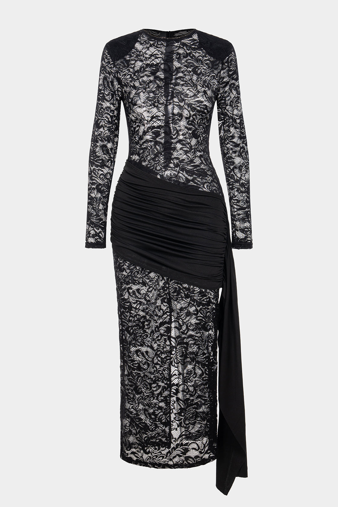Sheer Lace Round Neck Asymmetrical Ruched Tie-Up Long Sleeve Midi Dress