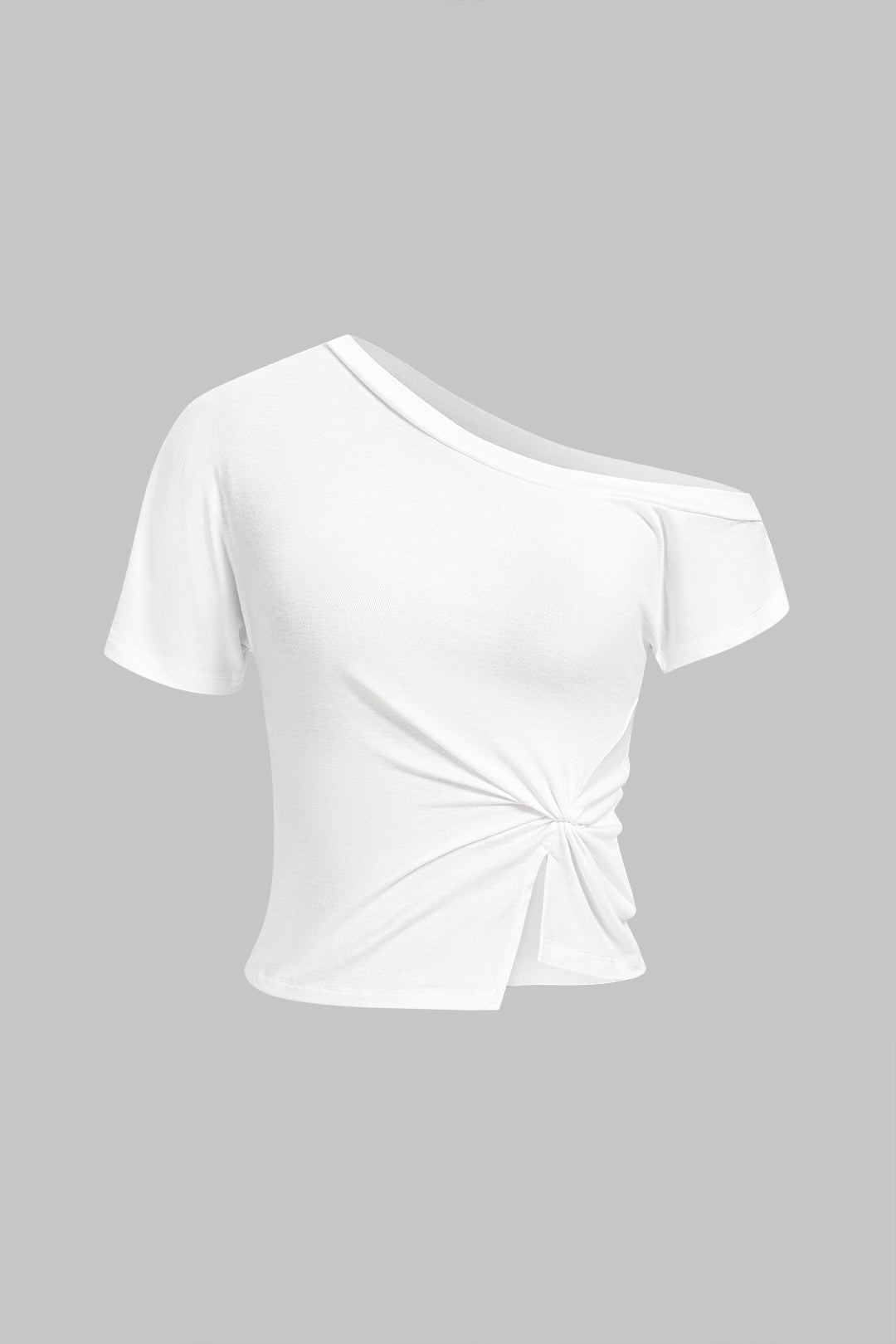 Solid One Shoulder Ruched Asymmetrical Short Sleeve T-shirt