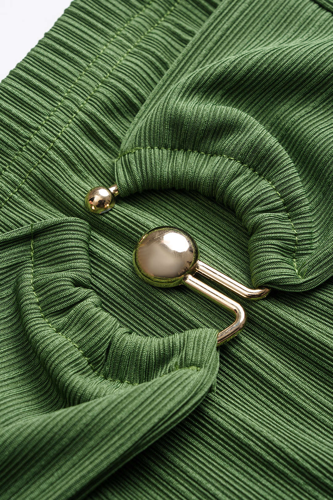 Metallic Decor Ribbed Cut Out Long Sleeve Top And Flared Pants Set