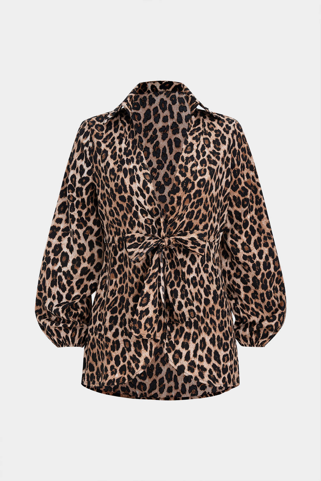 Leopard Print V-Neck Tie-Up Long-Sleeve Shirt