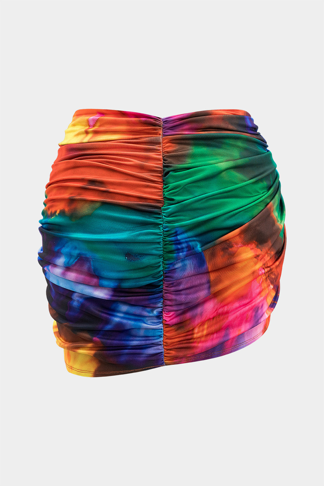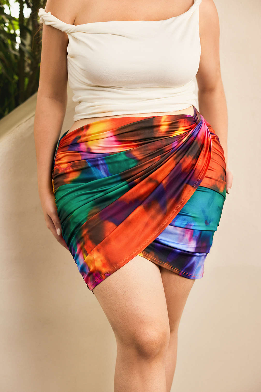 Plus Size Tie Dye Print Ruched Twist Knot Skirt