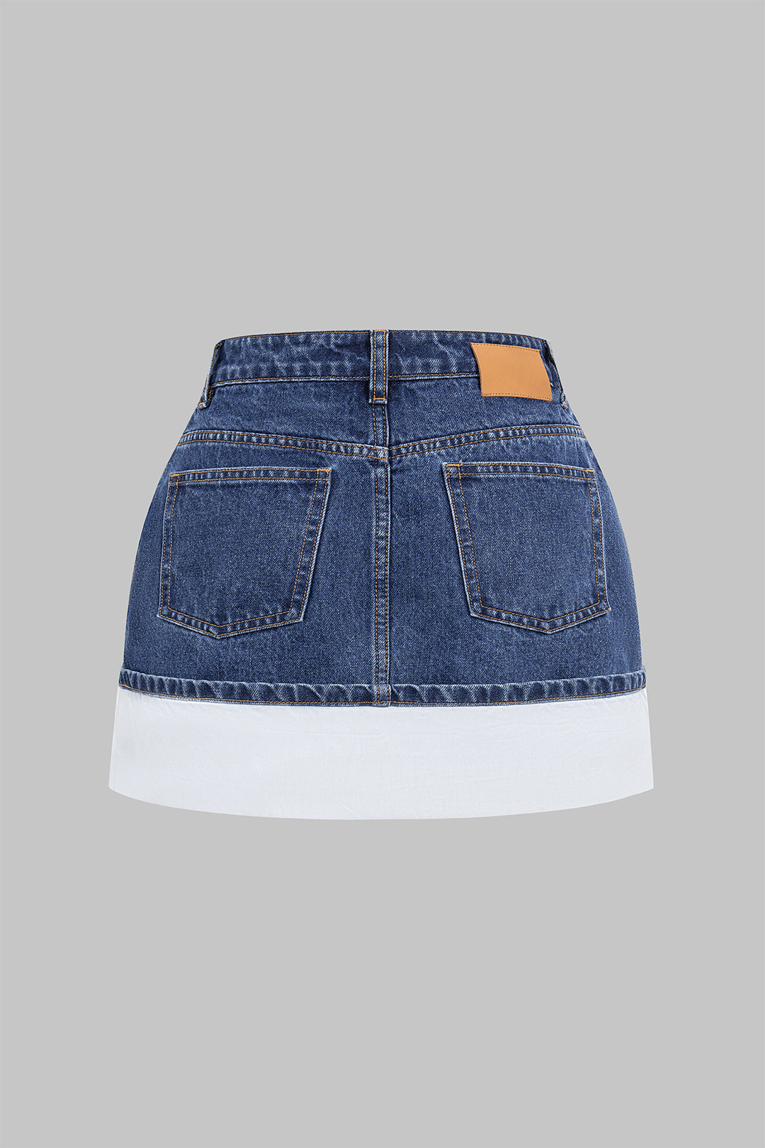 Plus Size Denim Patchwork Zipper Mini Skirt