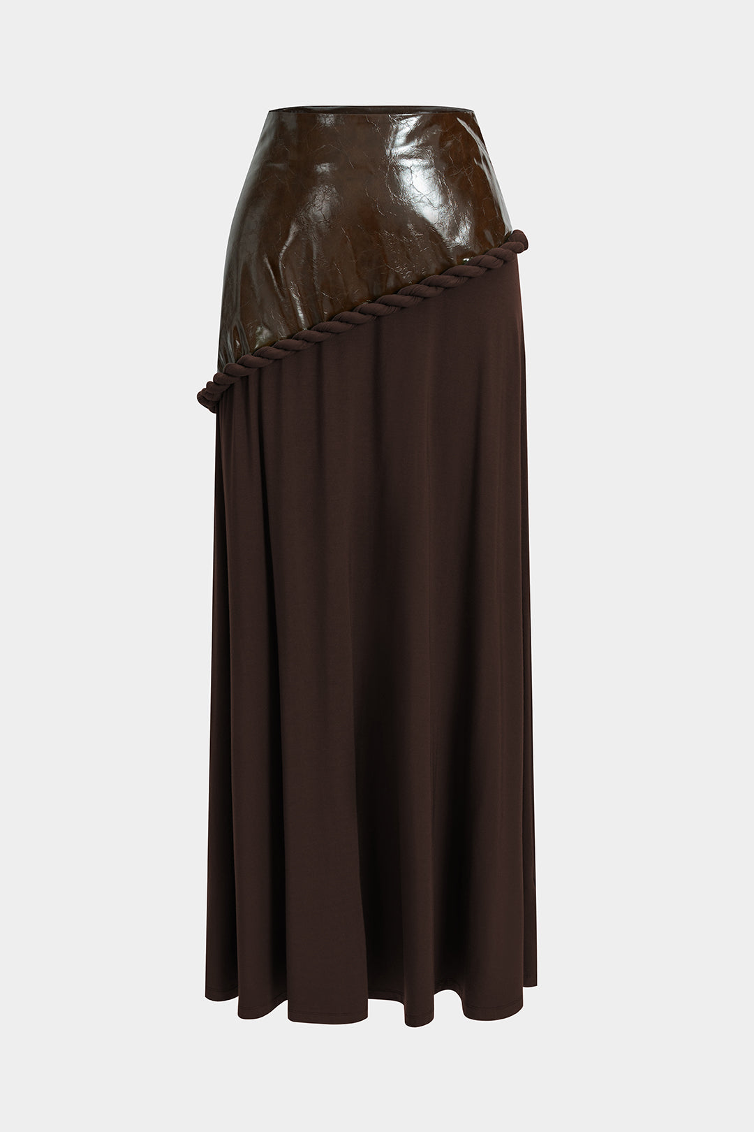 Faux Leather Patchwork Zipper Twist Knot Skirt